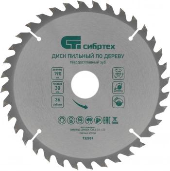 Диск пильный по дер. Сибртех 732867 d=190мм d(посад.)=30мм (циркулярные пилы) (упак.:1шт)