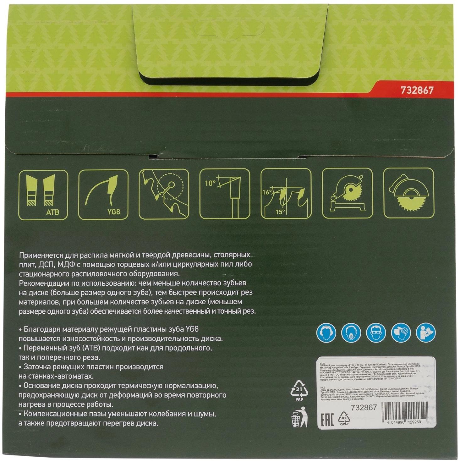 Диск пильный по дер. Сибртех 732867 d=190мм d(посад.)=30мм (циркулярные пилы) (упак.:1шт)