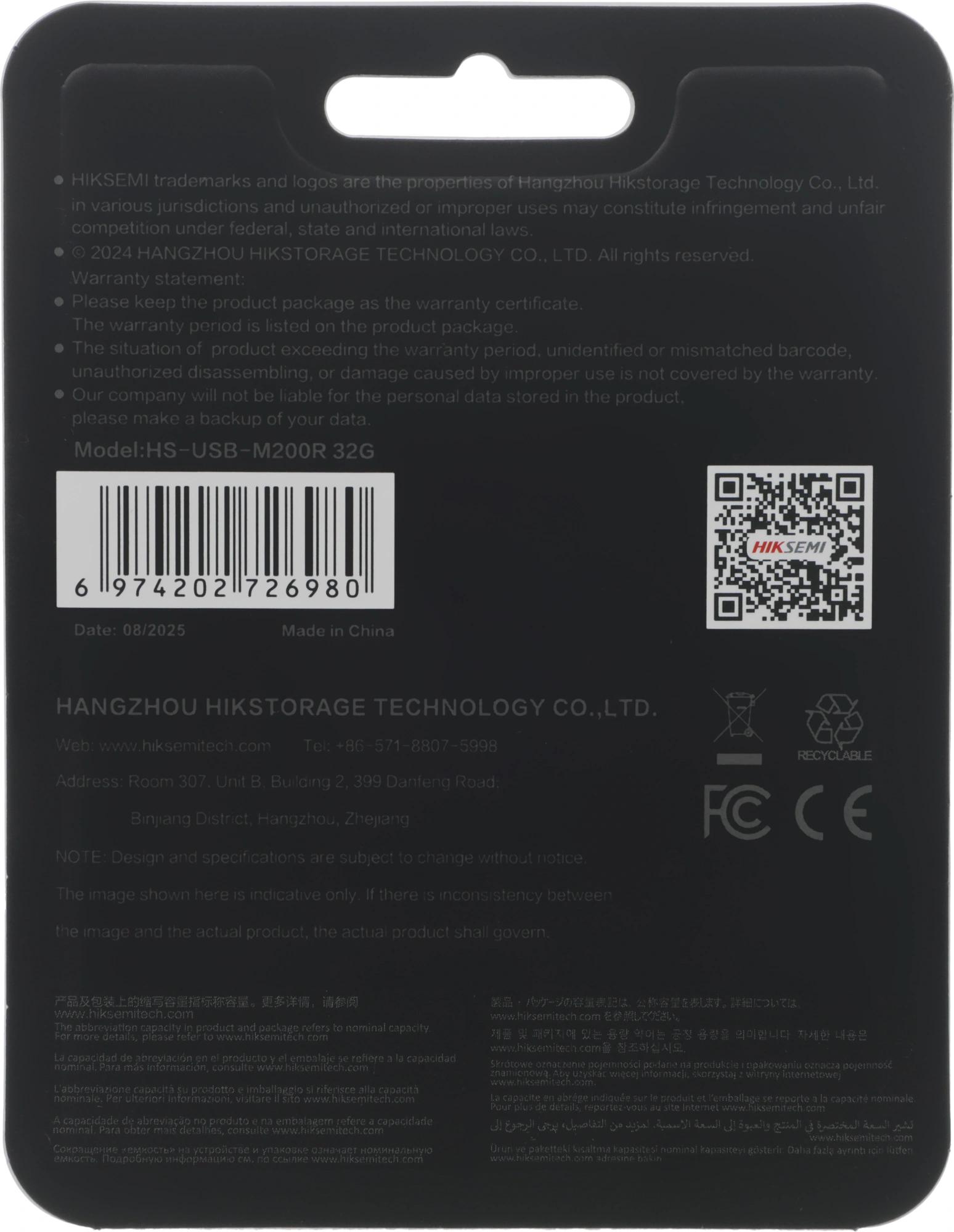 Флеш Диск Hikvision 32GB M200R HS-USB-M200R/32G USB2.0 черный