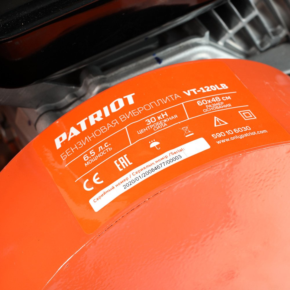 Виброплита Patriot VT-120 LB 4780Вт 6.5л.с. бензиновый оранжевый (590106030)