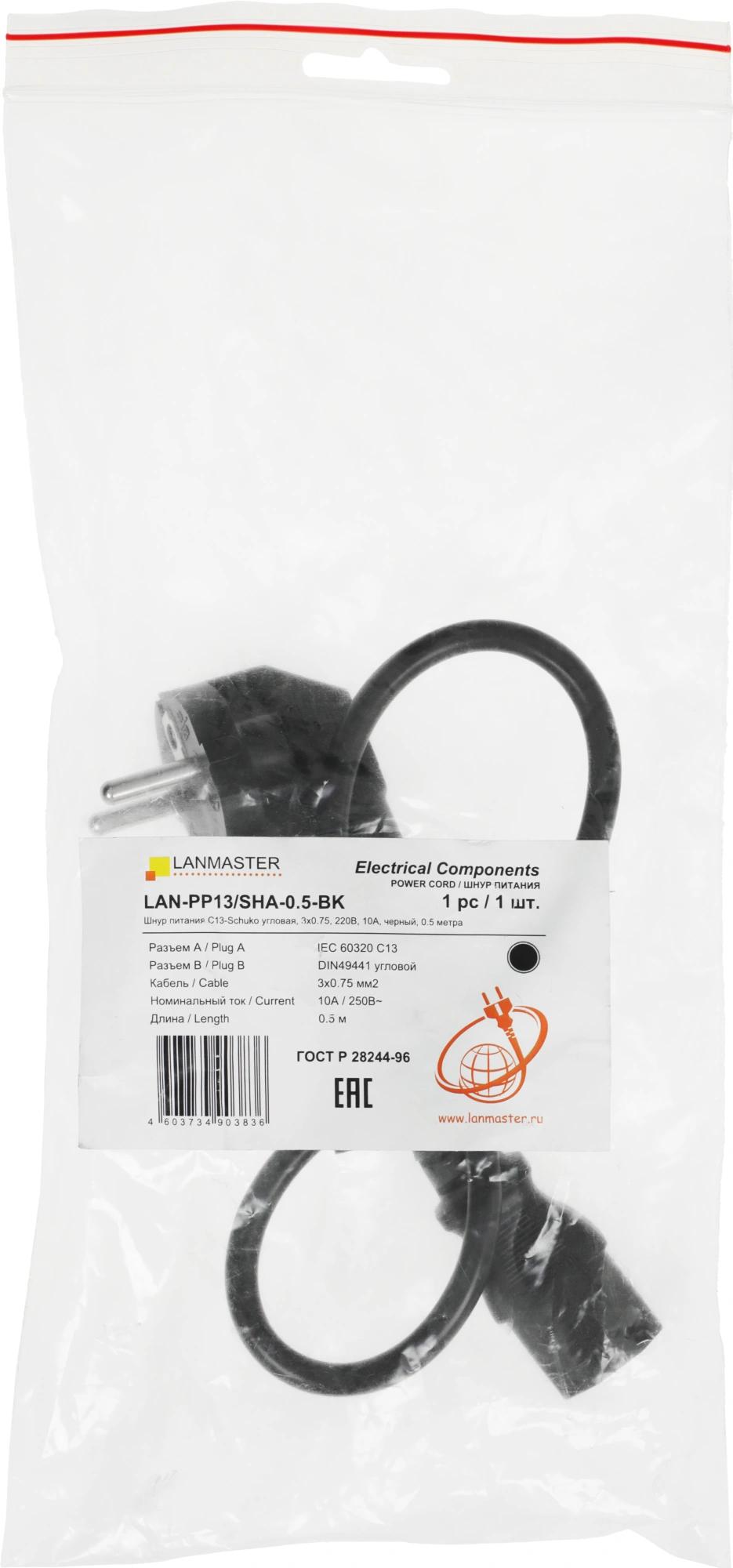 Шнур питания Lanmaster LAN-PP13/SHA-0.5-BK C13-Schuko проводник.:3x0.75мм2 0.5м 220В 10А черный