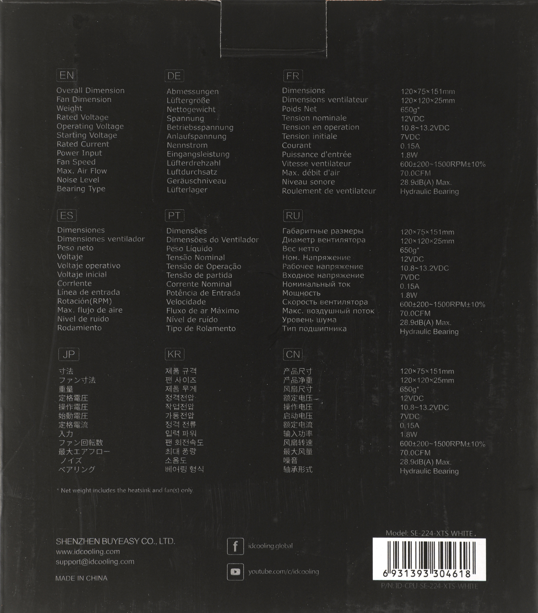 Устройство охлаждения(кулер) ID-Cooling SE-224-XTS Soc-AM5/AM4/1151/1200/2066/1700 белый 4-pin 16-29dB Al+Cu 220W 650gr Ret (SE-224-XTS WHITE)
