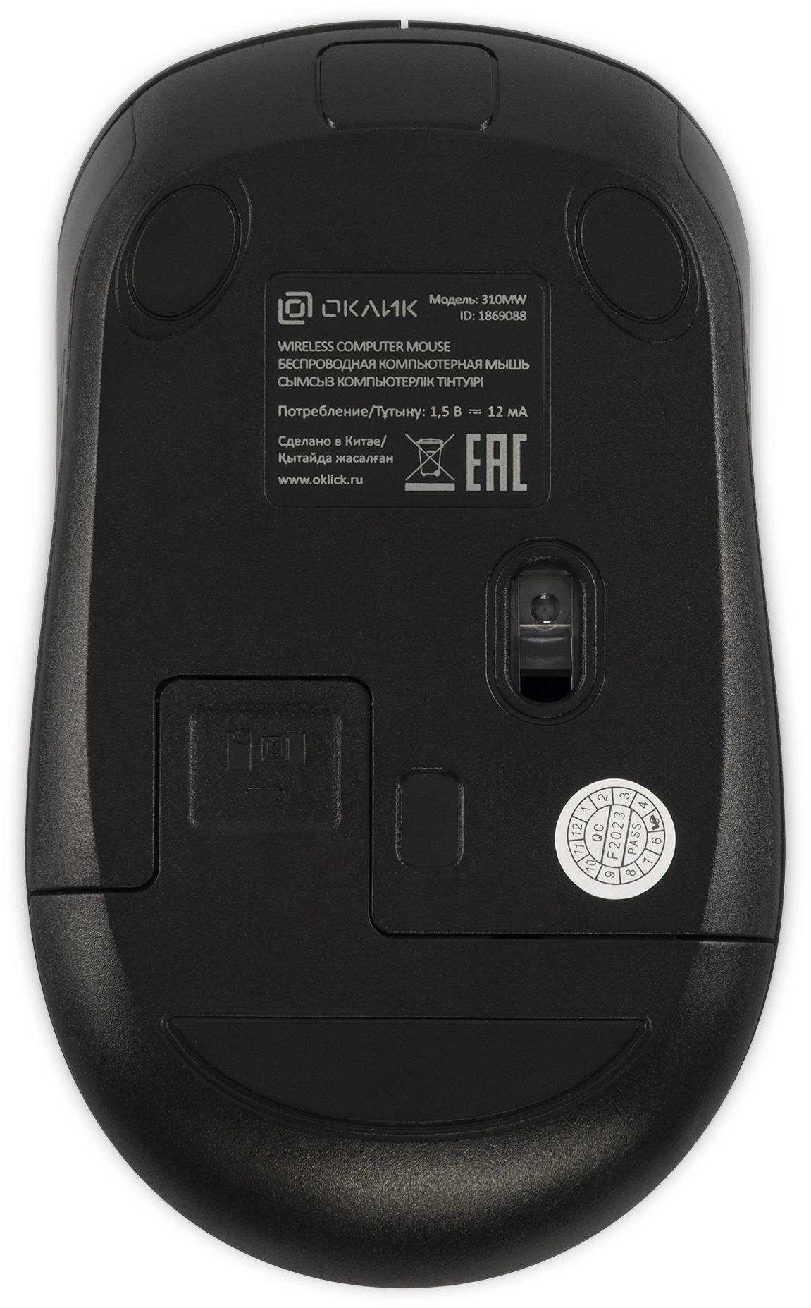 Мышь Оклик 310MW черный/серый оптическая 3200dpi беспров. USB для ноутбука 4but (1869088)