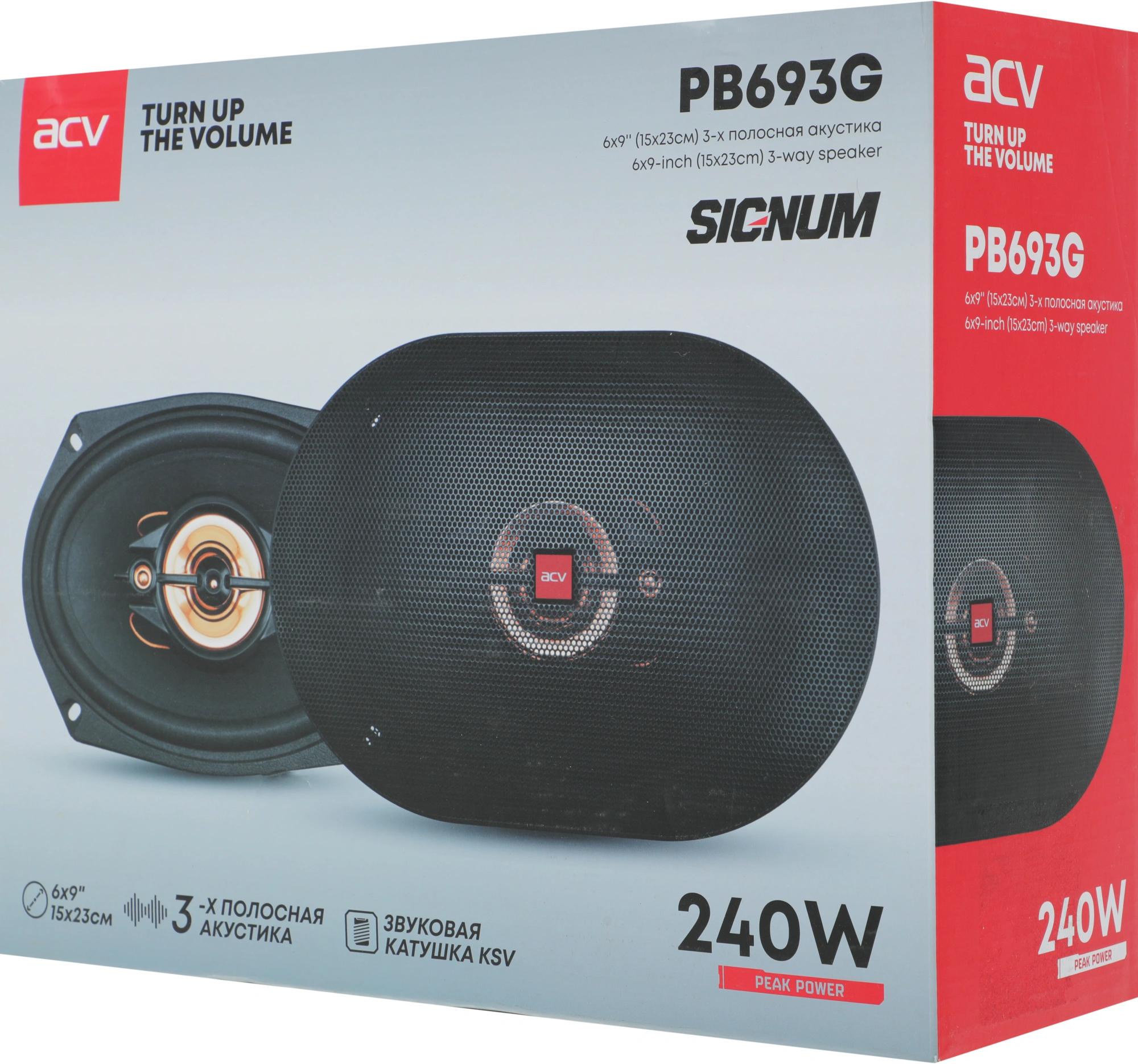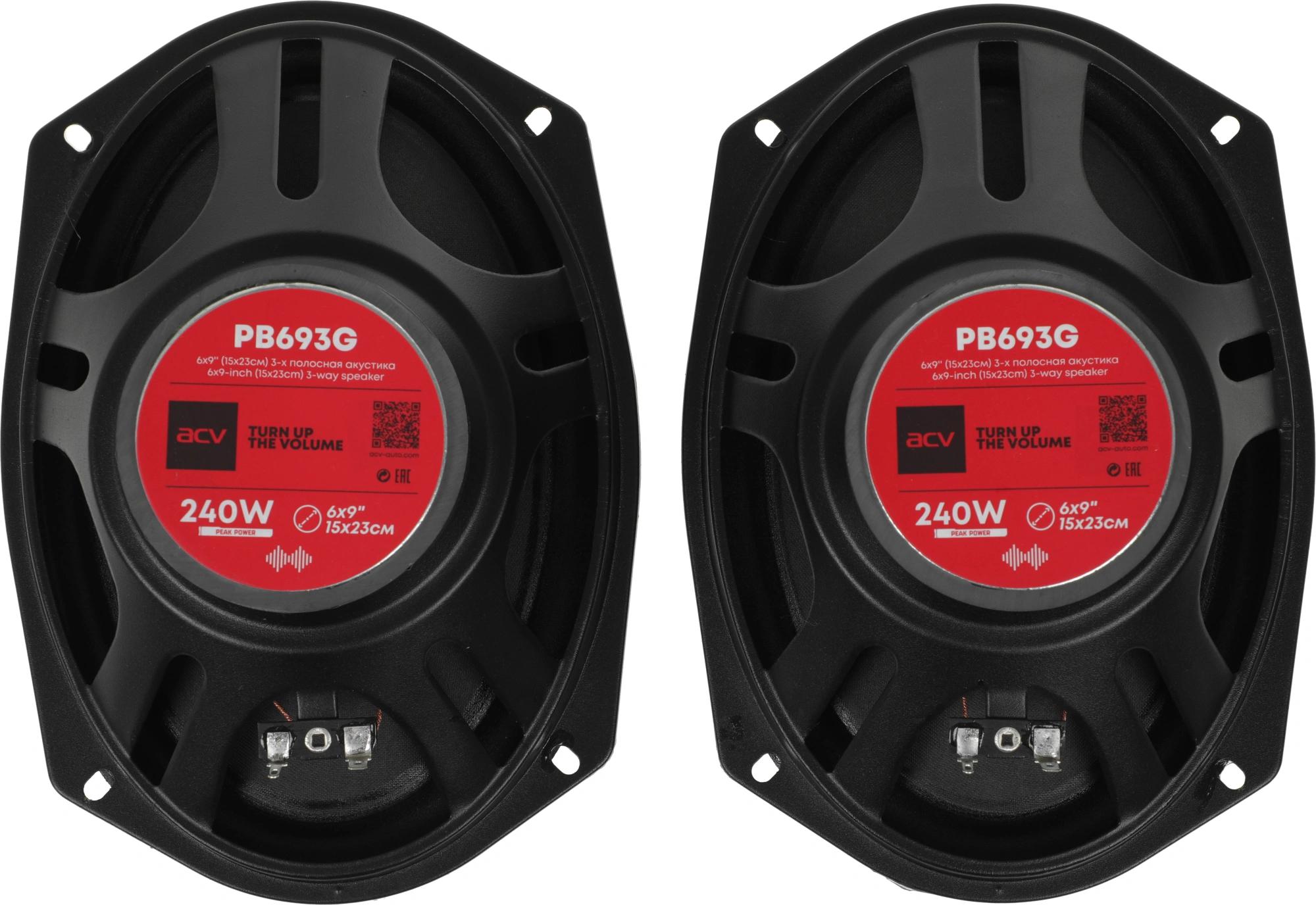 Колонки автомобильные ACV PB-693G 240Вт 88дБ 4Ом 16x23см (6x9дюйм) (ком.:2кол.) коаксиальные трехполосные