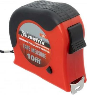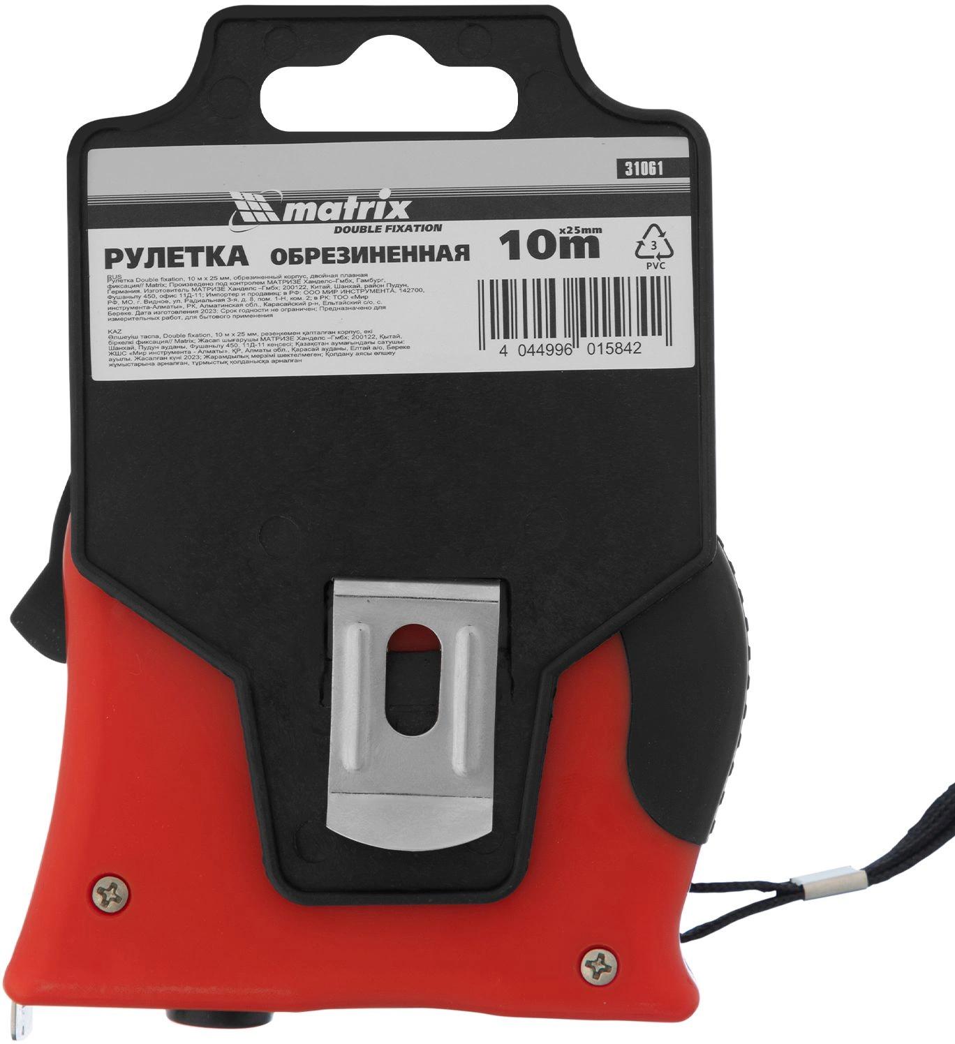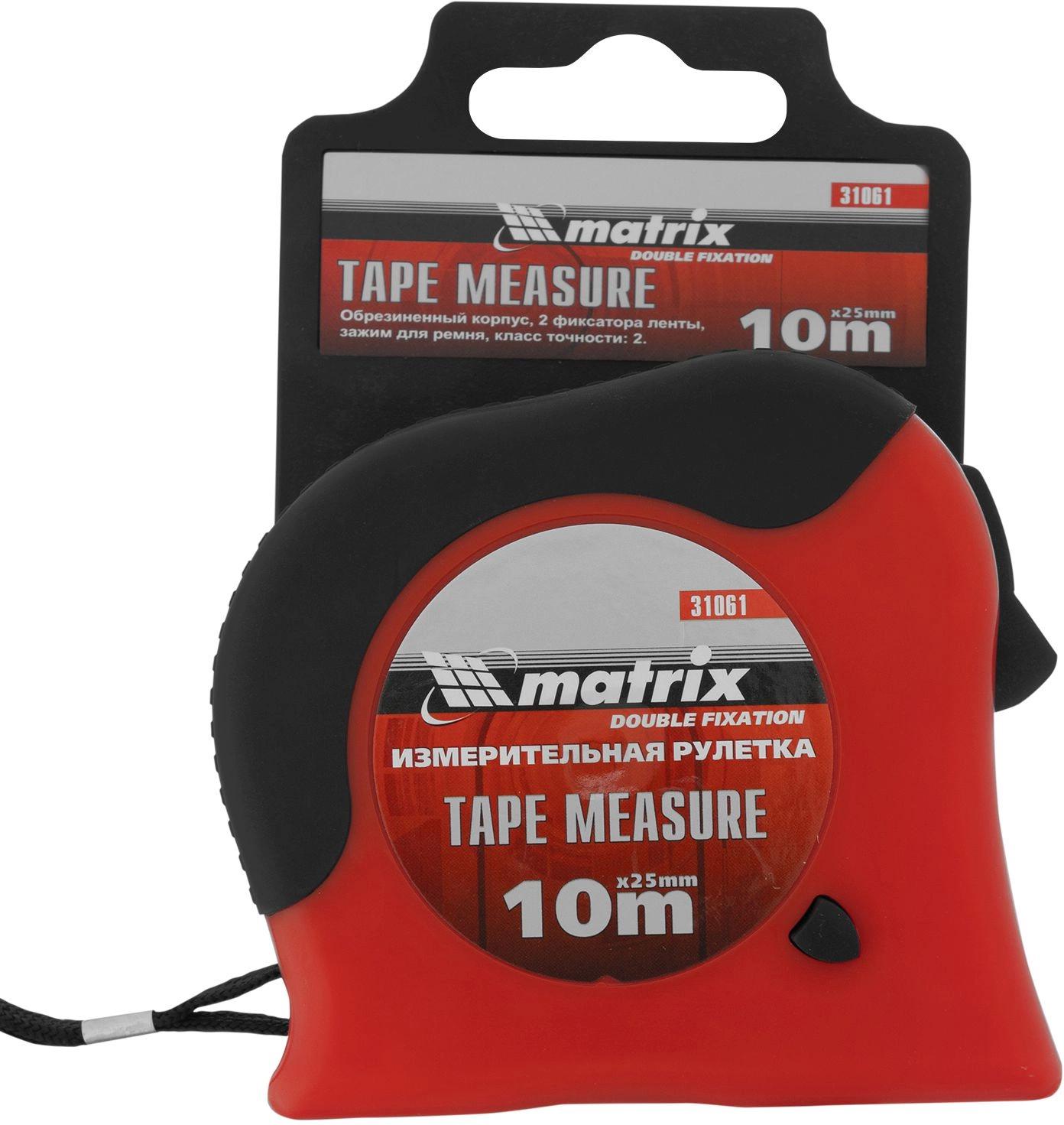 Рулетка Double fixation, 10 м х 25 мм, обрезиненный корпус, двойная плавная фиксация/ Matrix