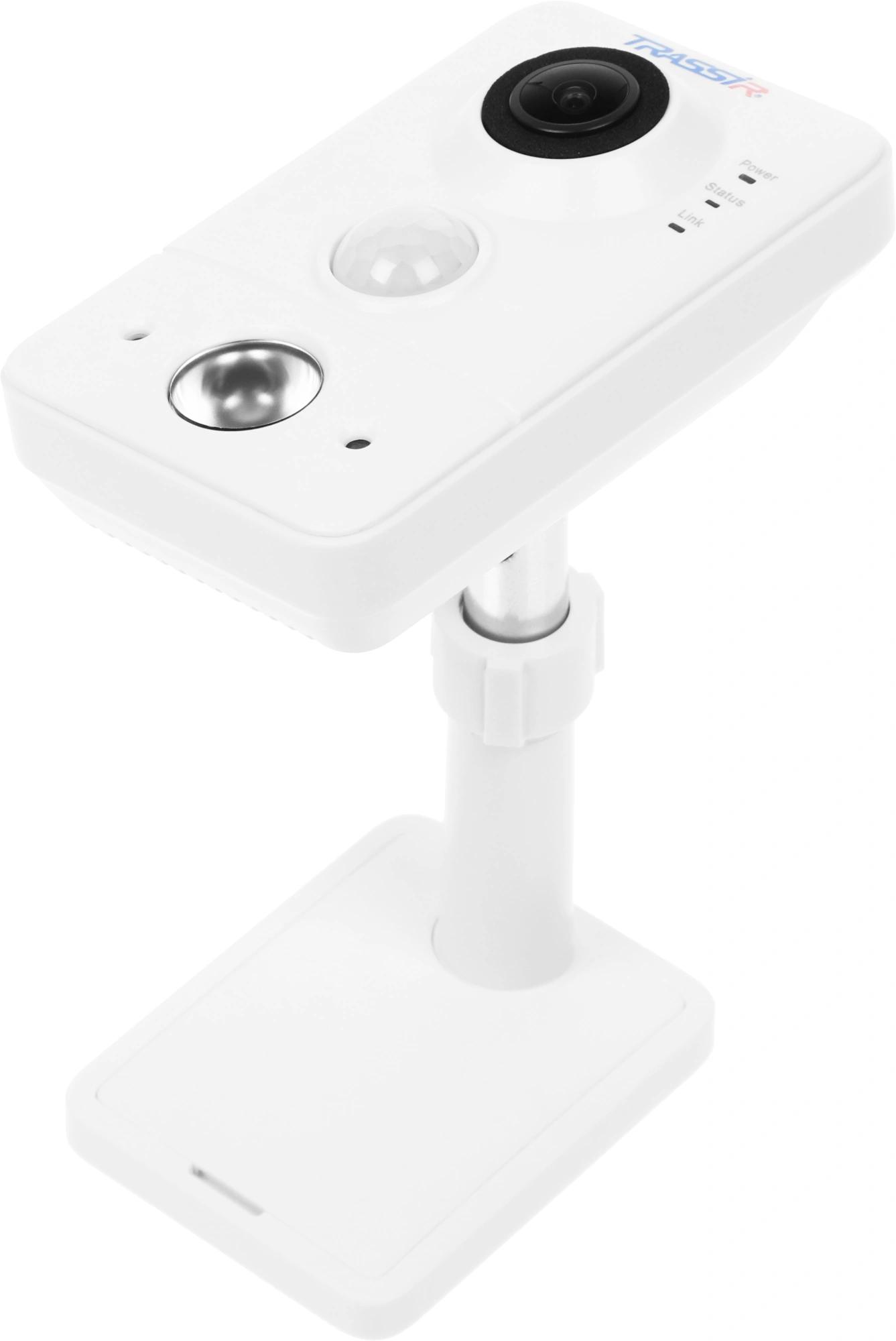 Режим"день/ночь" (механический ИК-фильтр), встроенные микрофон и динамик, питание PoE (802.3af) / 12V DC, -10°C ... +50°C, грозозащита - TVS 4000V. Базовая встроенная аналитика (пересечение линии, контроль области, детекция людей). Поддержка TRASSIR Cloud.