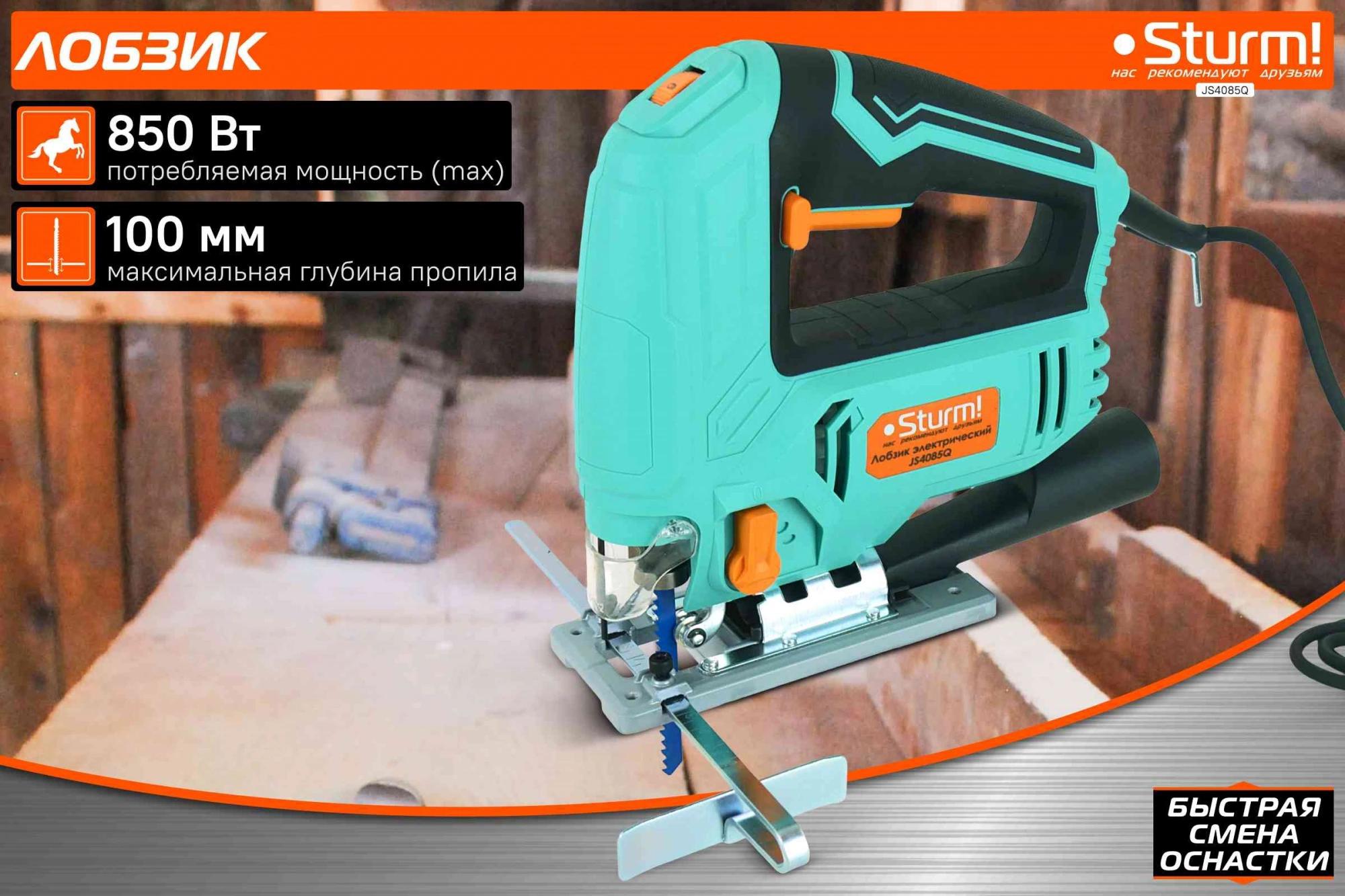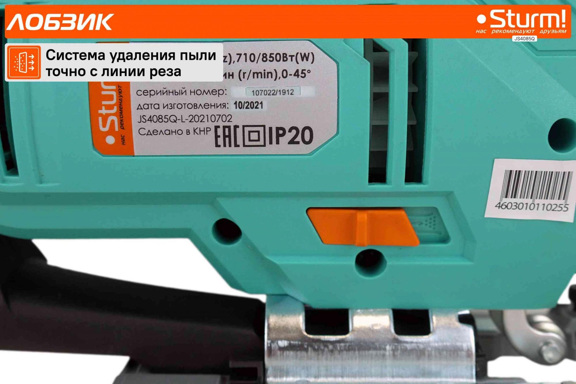 Лобзик, параллельная направляющая, ключ шестигранный, пилка для лобзика, адаптер для пылесоса, инструкция.