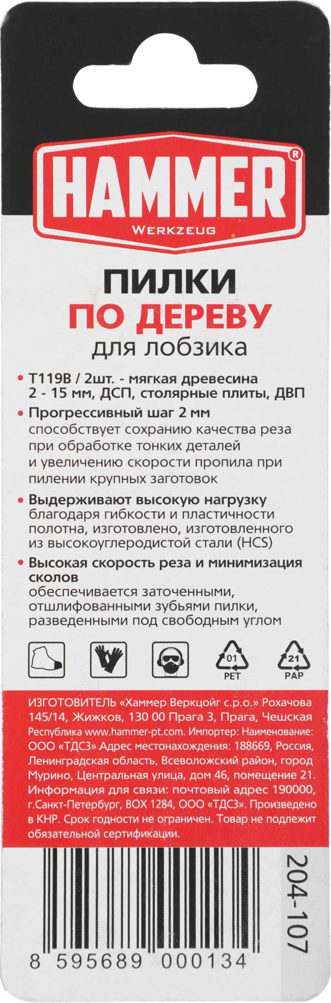 Набор пилок по дереву Hammer Flex JG WD-PL T119B 2пред. (лобзики)