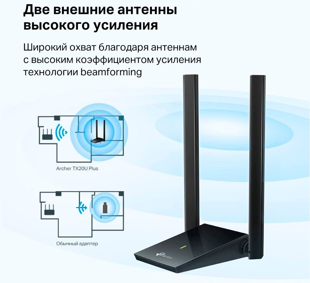 Сетевой адаптер Wi-Fi TP-Link Archer TX20U Plus AX1800 USB 3.0 (ант.внеш.несъем.) 2ант.