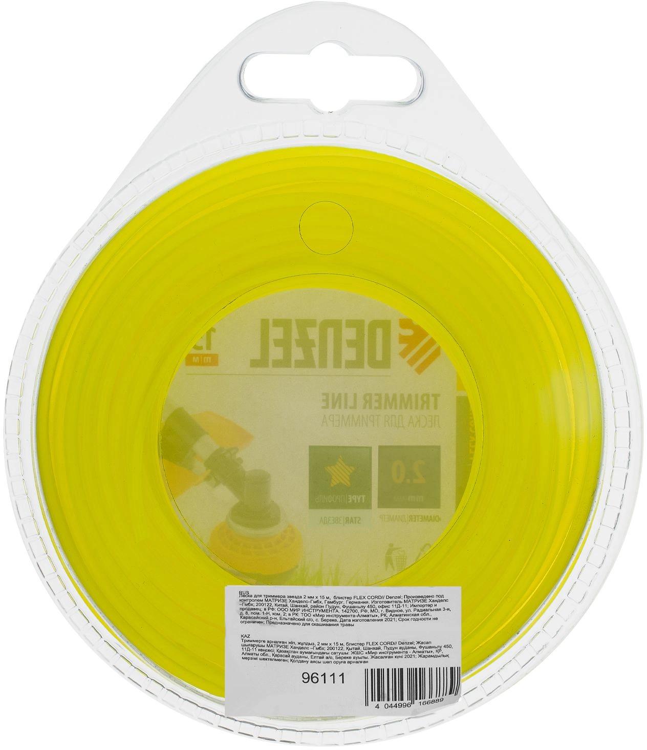 Леска для триммера, звезда 2 мм х 15 м, блистер Flex cord DENZEL 96111