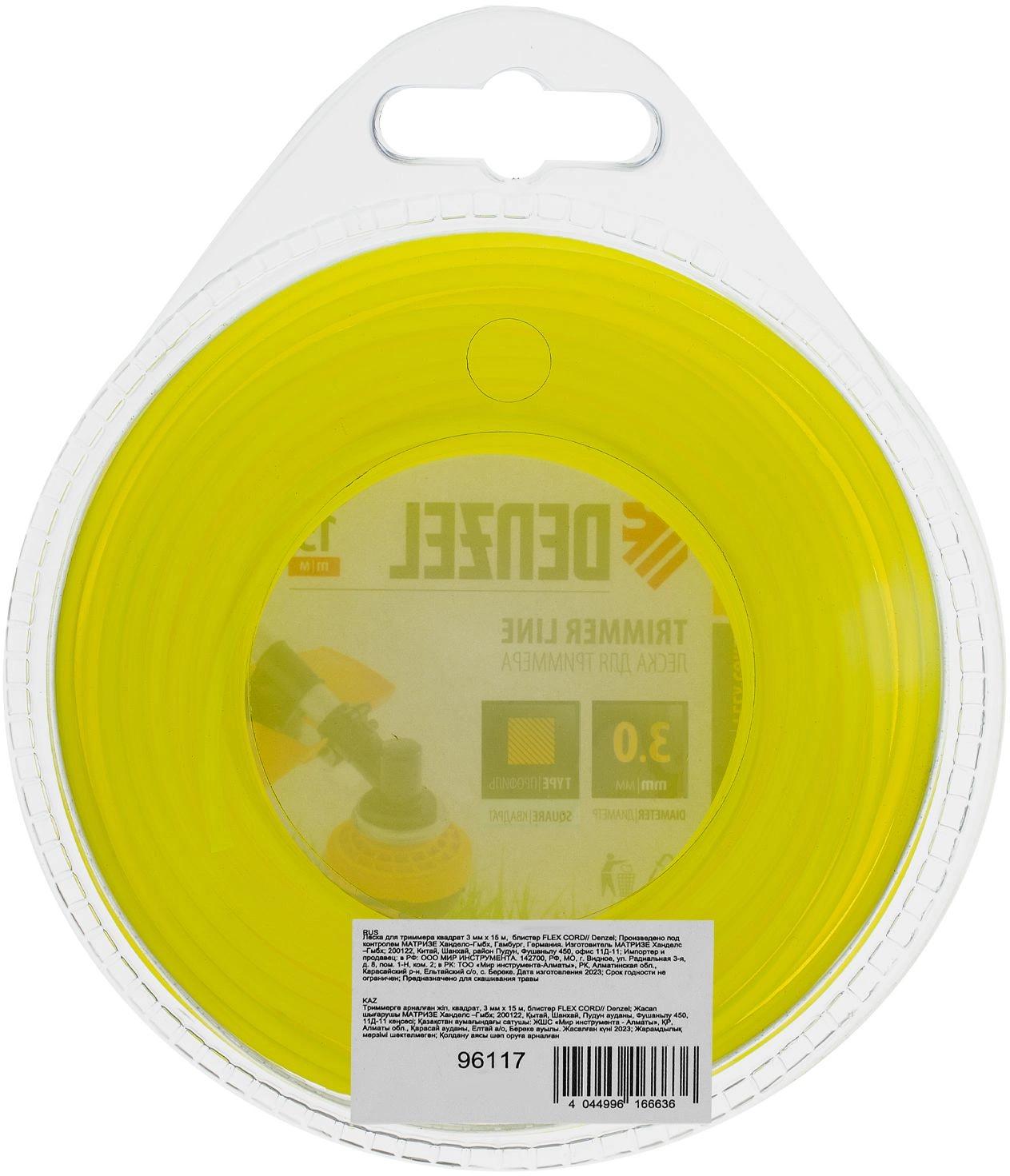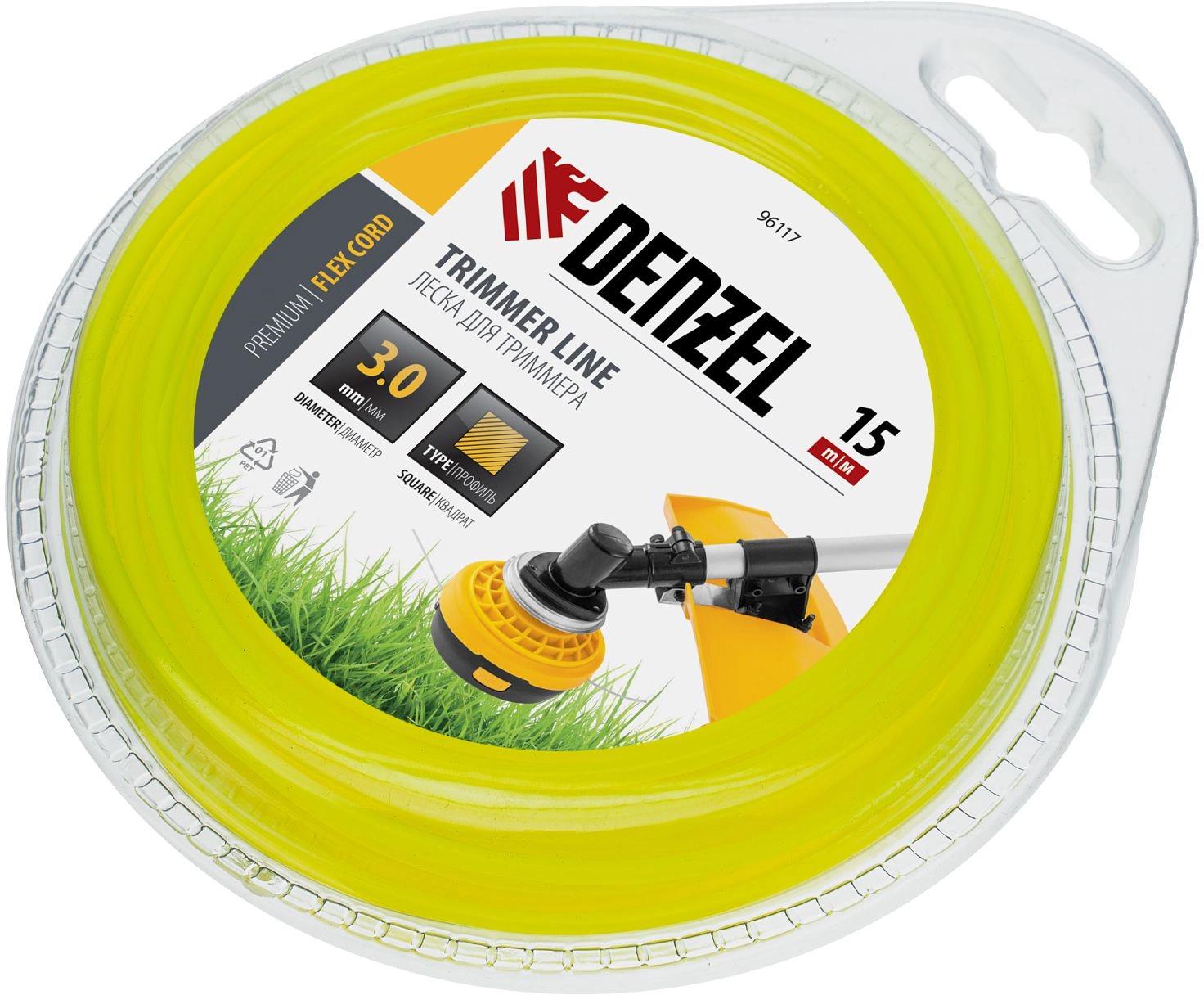 Леска для триммера, квадрат 3 мм х 15 м, блистер Flex cord DENZEL 96117