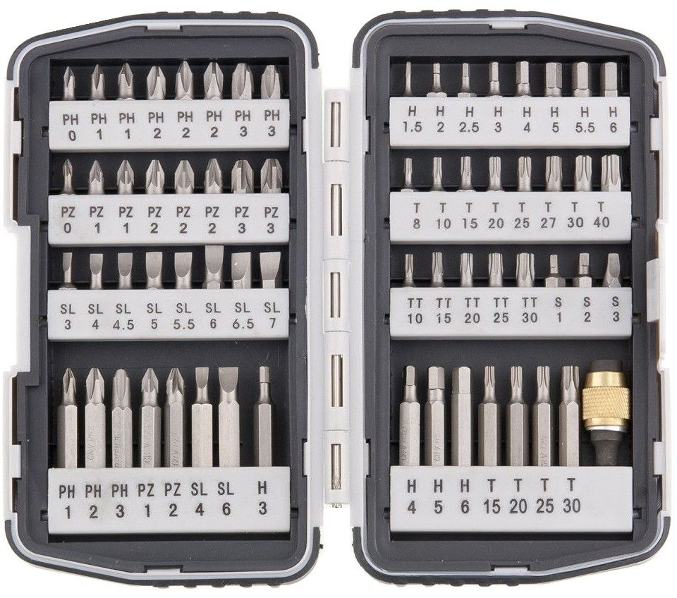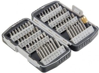 Набор бит с магнитным адаптером (64 пр; 1/4") MATRIX 11327 предназначен для монтажа и демонтажа резьбовых соединений, шурупов, саморезов с помощью механизированного и ручного инструмента.