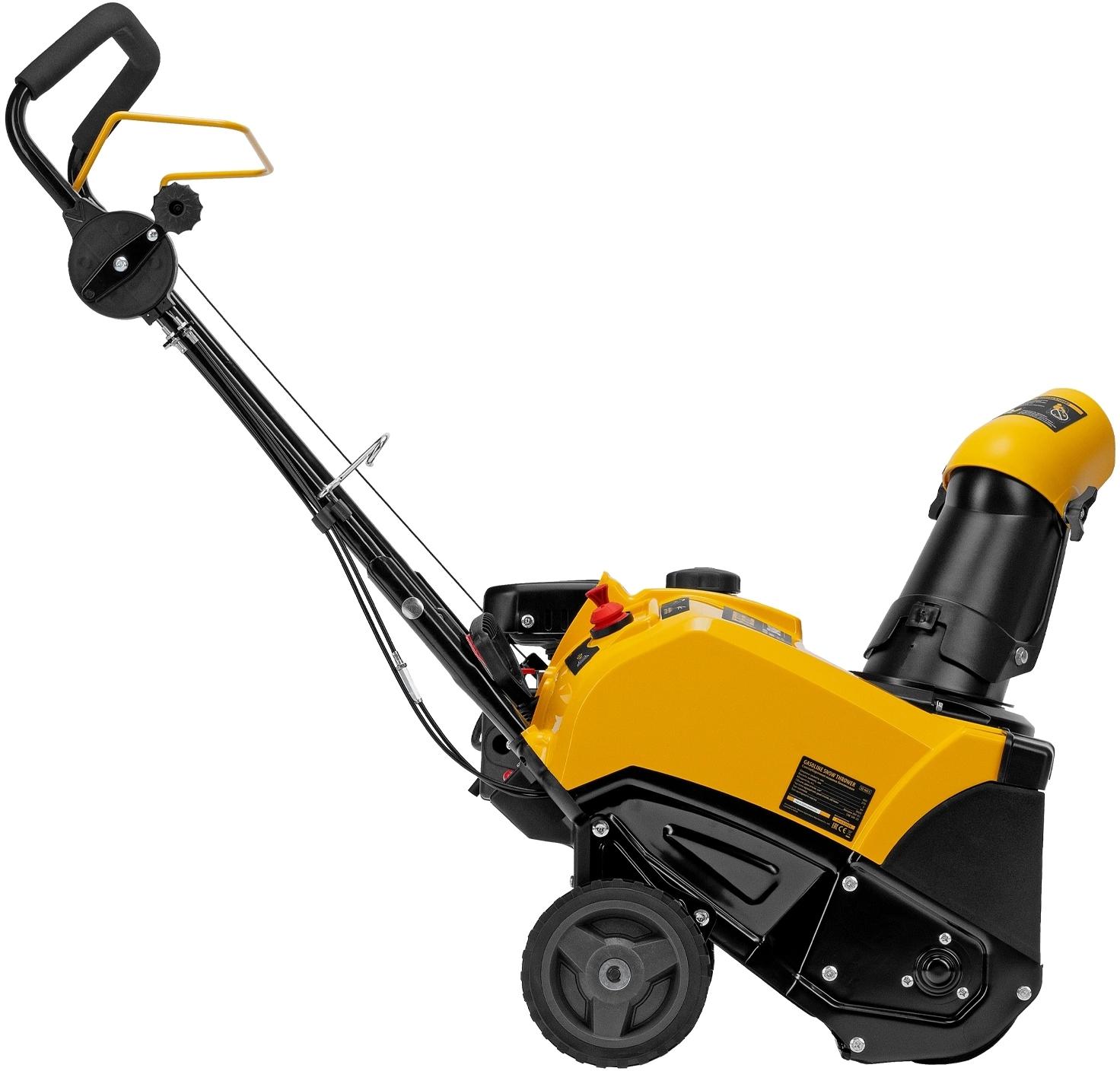 Снегоуборочная машина - 1 шт, Колеса - 2 шт, Комплект крепежа - 1 шт, Рукоятка поворота желоба - 1 шт, Снегоотводная труба - 1 шт, Ручки управления в сборе с панелью и тросиками - 1 шт, Руководство по эксплуатации - 1 шт