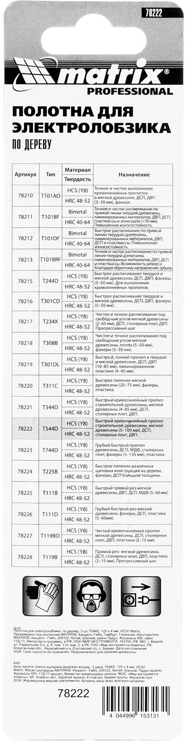 Набор пилок по дереву Matrix 78222 3пред. (лобзики)