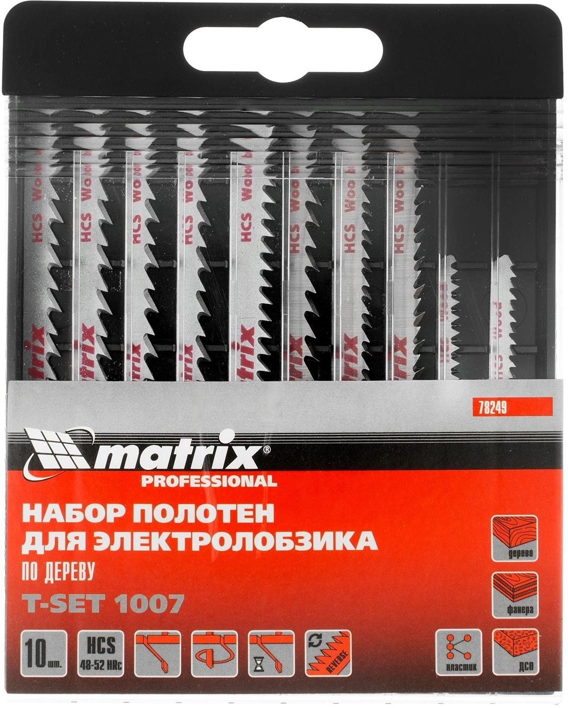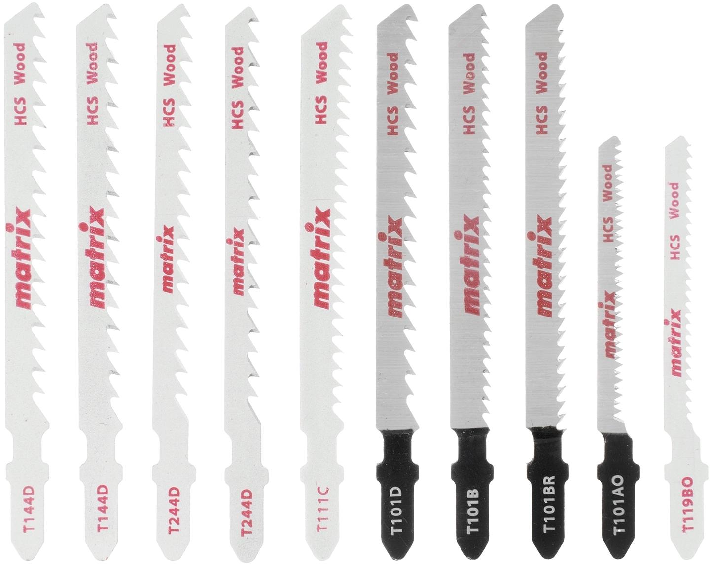 Набор полотен для электролобзика Matrix T-SET1007 78249 состоит из 10 шт. и предназначен для работ по дереву. В него входят пилки как для грубого быстрого распила, так и для точного чистого реза. Пилки совместимы с электролобзиками, рассчитанными на оснастку с Т-образным хвостовиком.