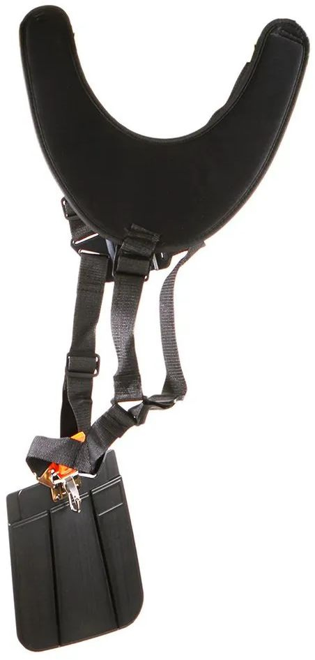 Для работы с триммером/кусторезом. Широкие лямки. Упругие вставки. Регулировочные пряжки для подгонки по размеру. Быстросъемный карабин для замены инструмента.