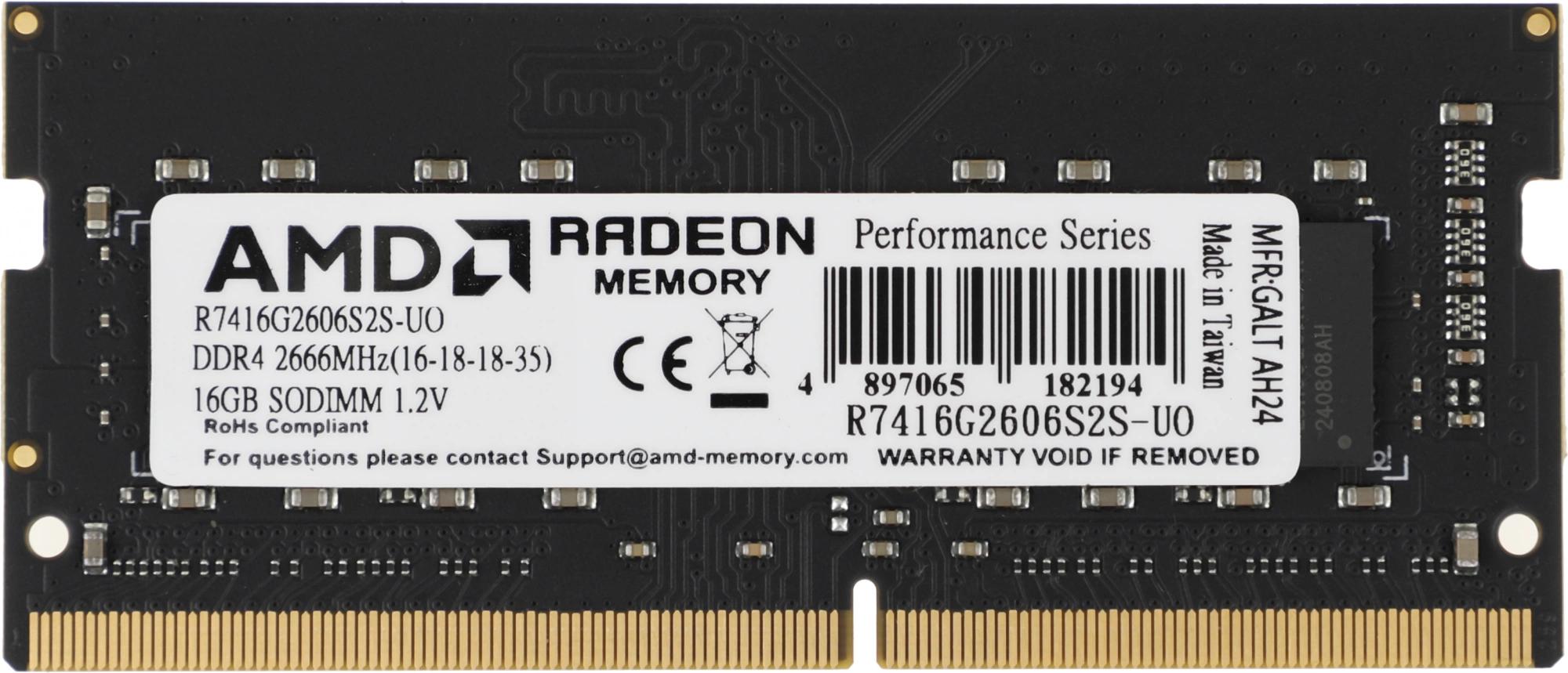 Память DDR4 16GB 2666MHz AMD R7416G2606S2S-UO Radeon R7 Performance Series OEM PC4-21300 CL16 SO-DIMM 260-pin 1.2В OEM