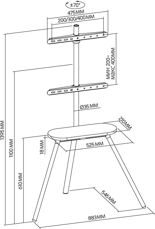 Подходит для телевизоров c диагональю