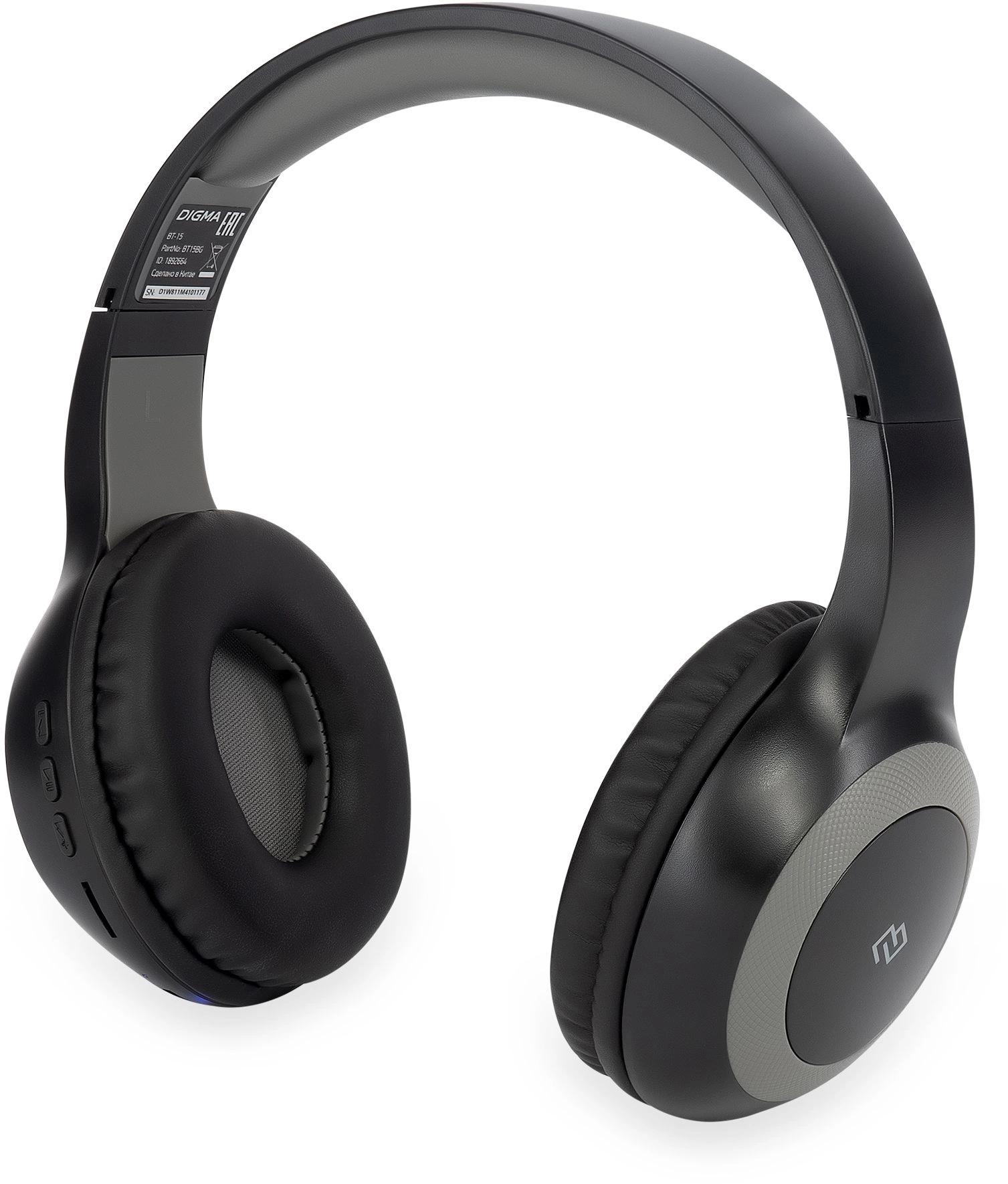 Гарнитура накладные Digma BT-15 черный/серый беспроводные bluetooth оголовье (BT-15BG)