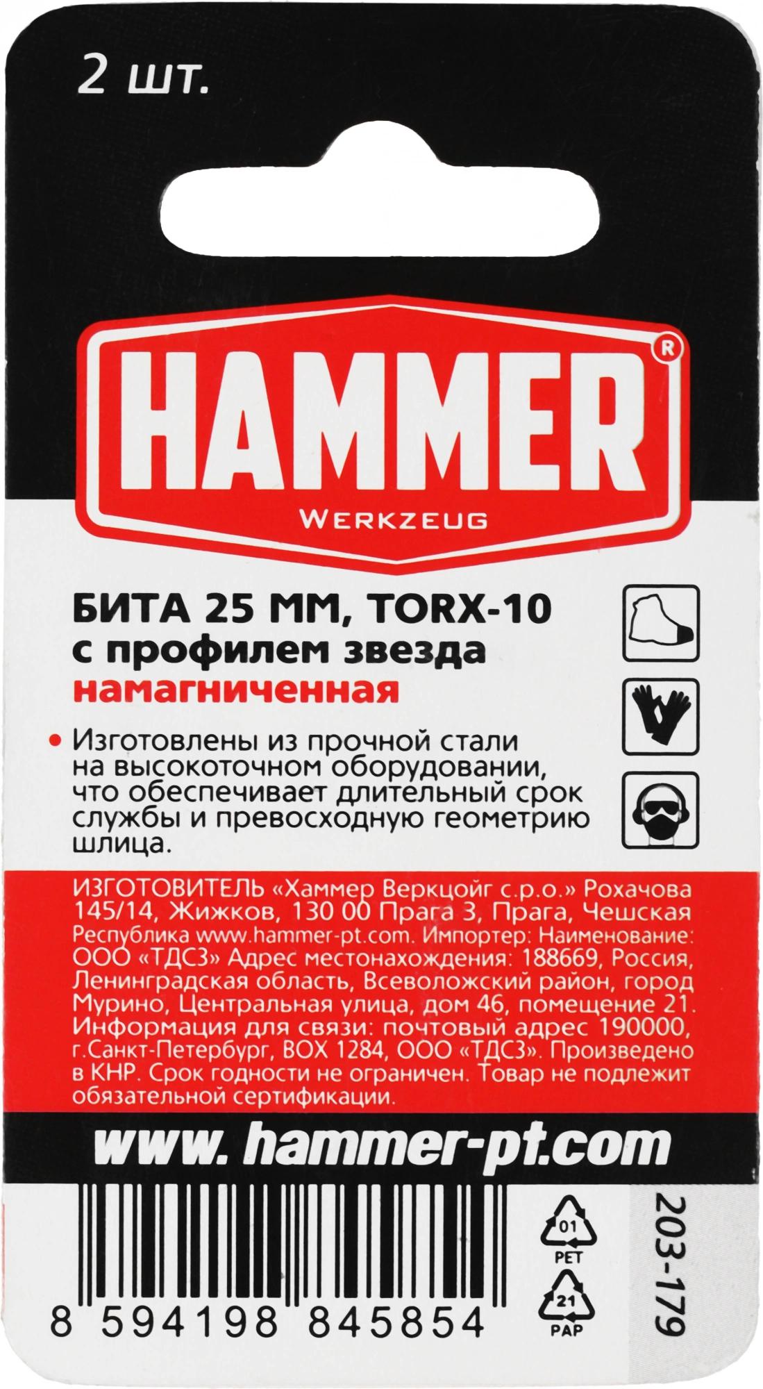 Набор бит Hammer 203-179 универсал. Дл=25мм (2пред.) для шуруповертов