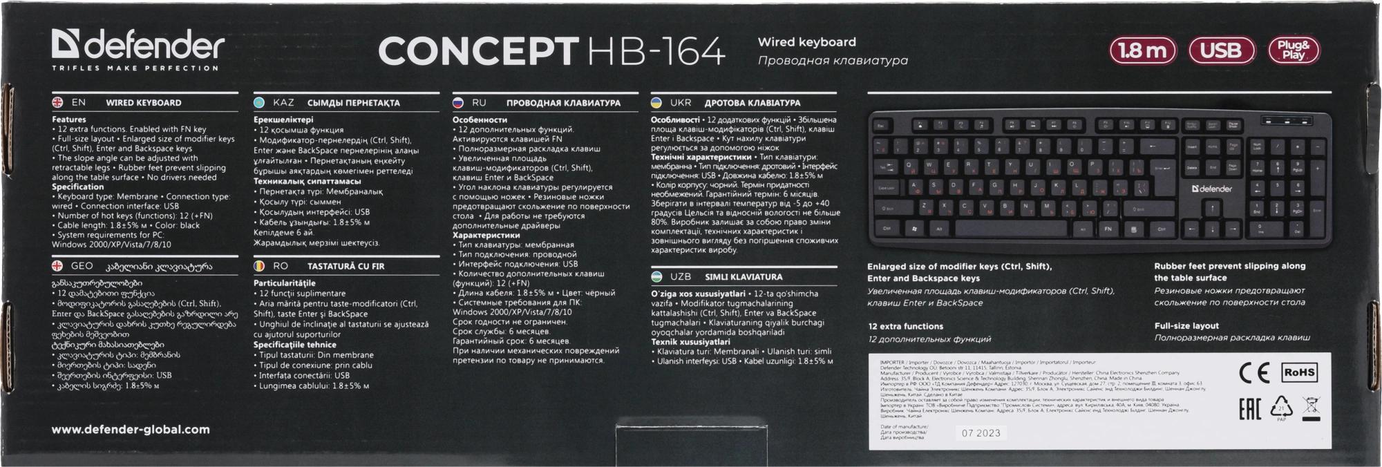 Клавиатура Defender Concept HB-164 черный USB Multimedia (45164)