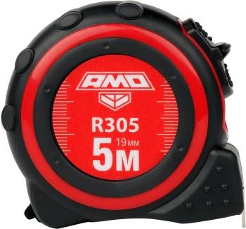 Рулетка измерительная AMO R305 длиной 5 метра относится к бюджетной линейке бренда, все представители которой отличаются долговечностью и предлагают пользователю привычный, безотказный функционал. Эта модель отличается от младшей трехточечной, более надежной, схемой крепления зацепа к ленте.