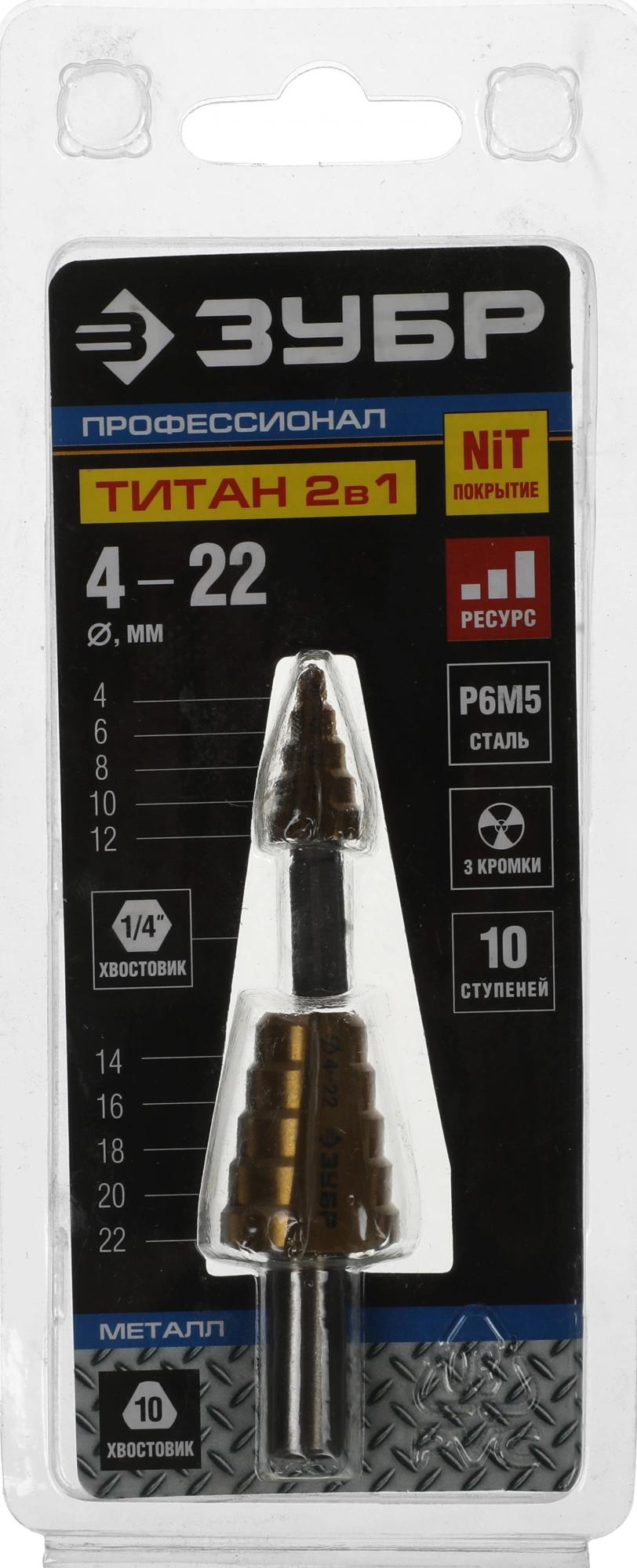 ЗУБР 4-22 мм, 11 ступеней, сверло ступенчатое составное, покрытие NiT