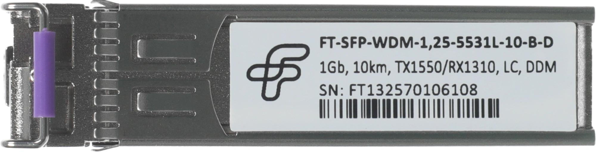 Трансивер Future Technologies FT-SFP-WDM-1,25-5531L-10-B-D оптич. SFP WDM SM 1.25Гбит/с Tx:1550нм Rx:1310нм до 10км