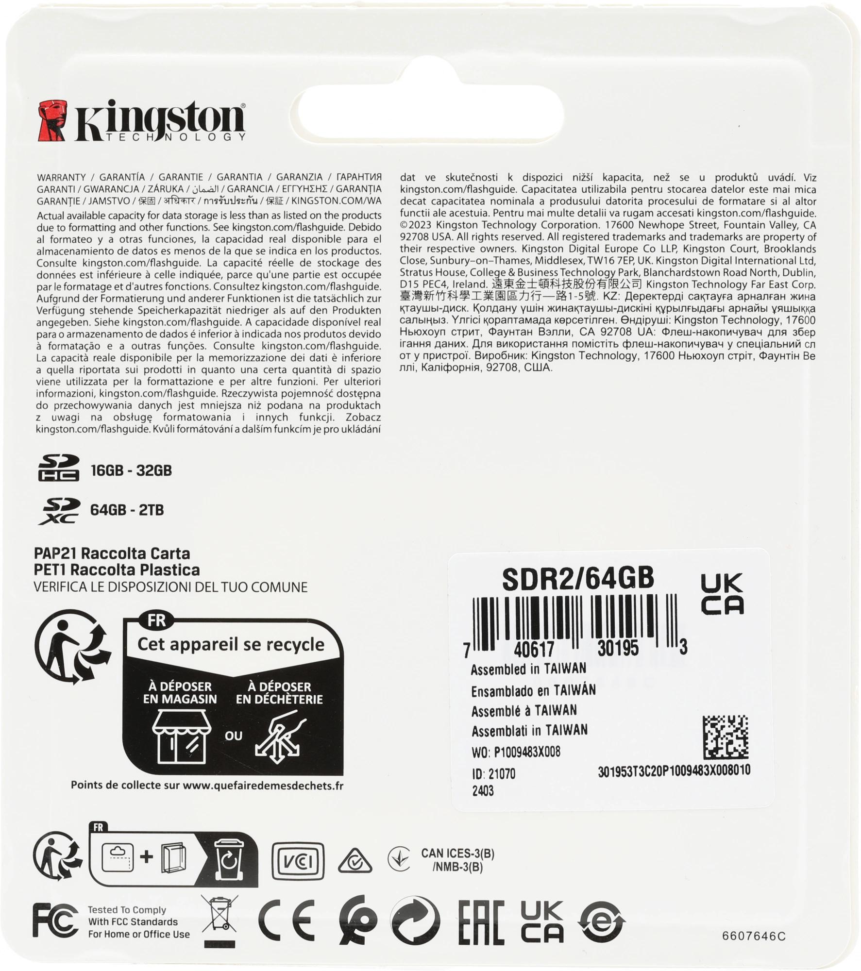 Флеш карта SDXC 64GB Kingston SDR2/64GB Canvas React Plus w/o adapter
