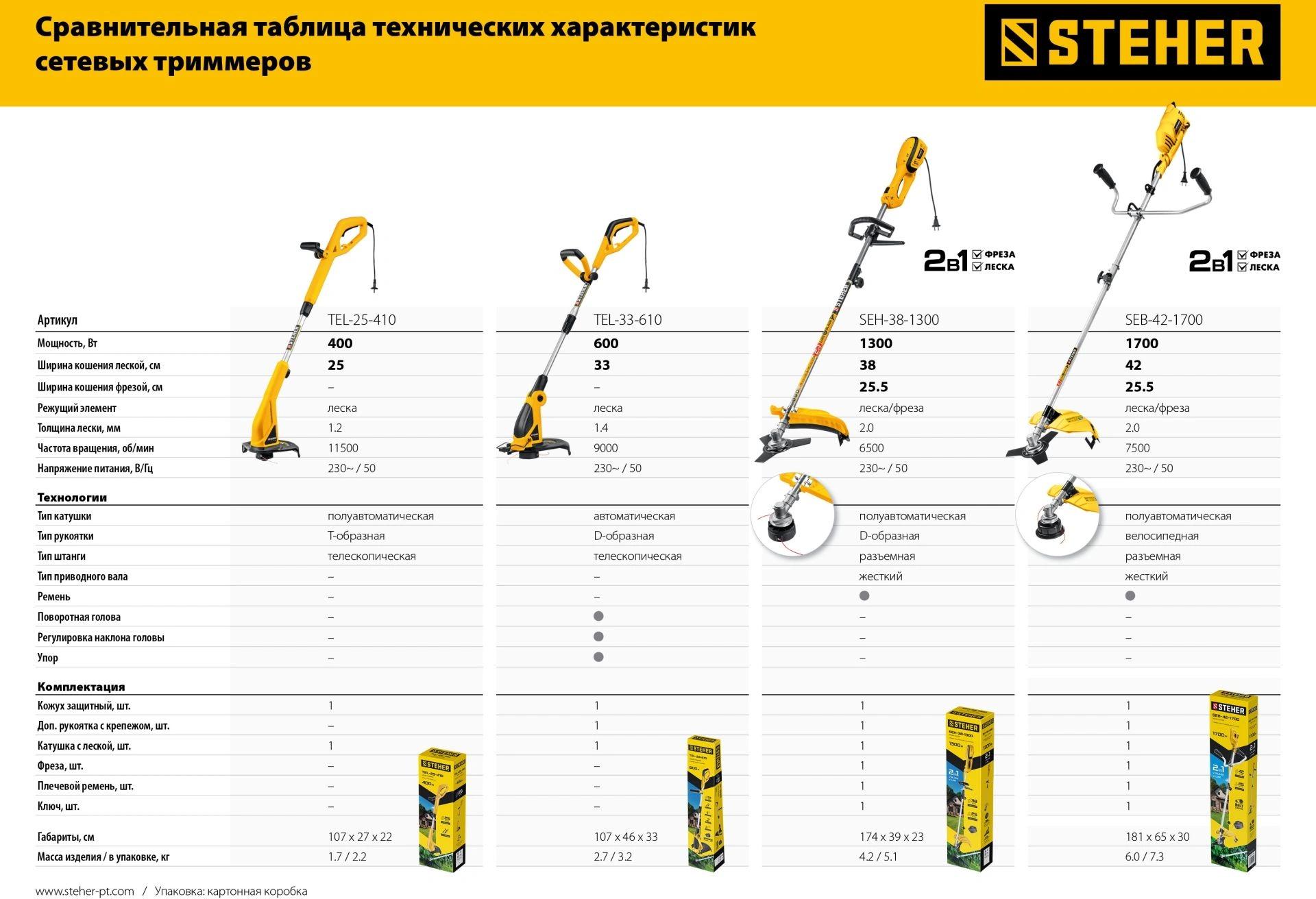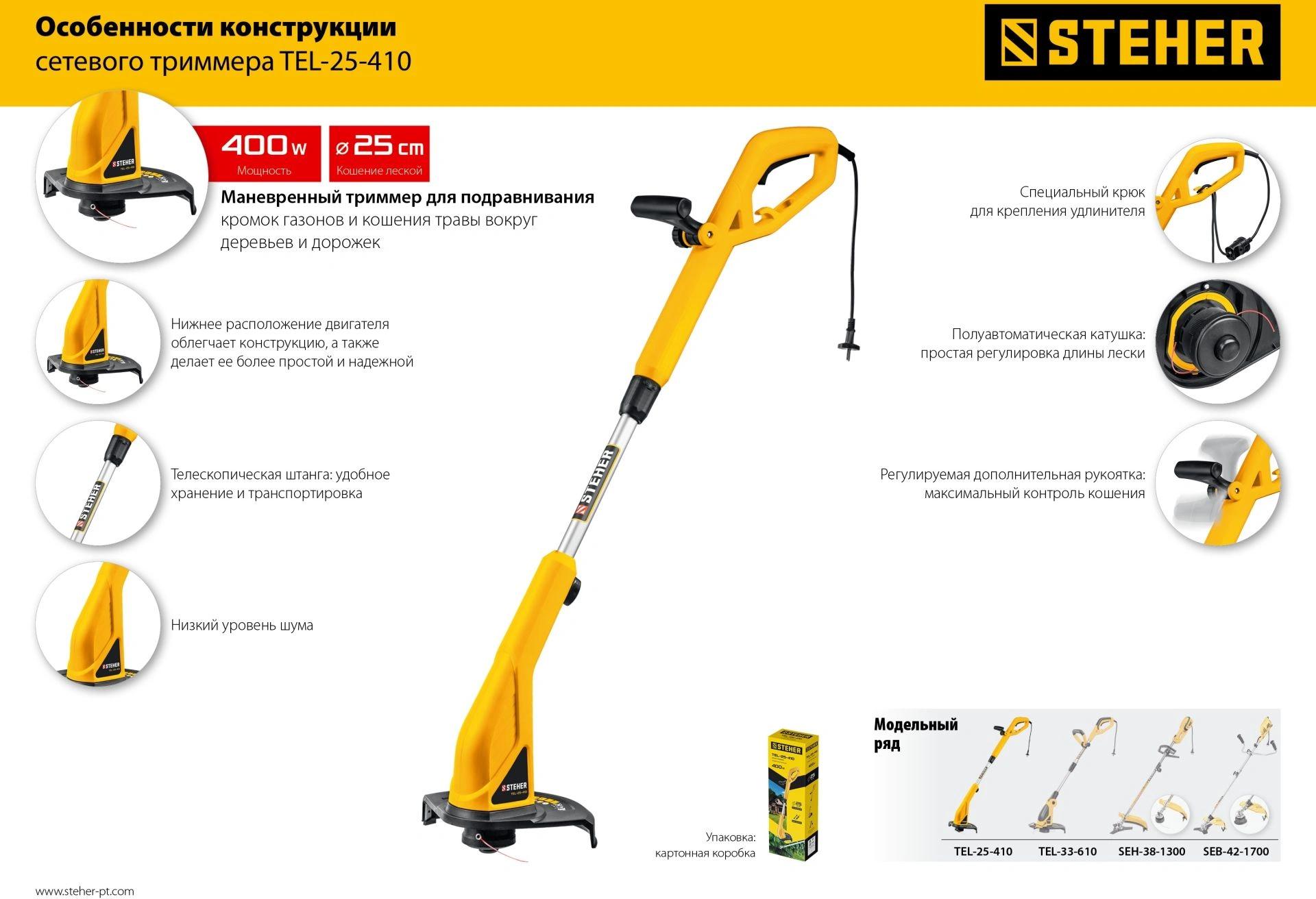 Триммер электрический Steher TEL-25-410 400Вт 0.54л.с. неразбор.штан. реж.эл.:леска