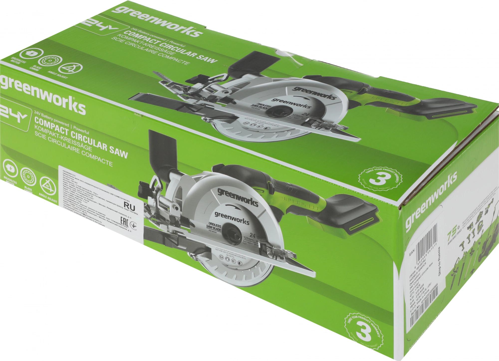 Пила циркулярная аккумуляторная 24V GREENWORKS G24MCS, руководство пользователя, упаковка, защитный кожух.
