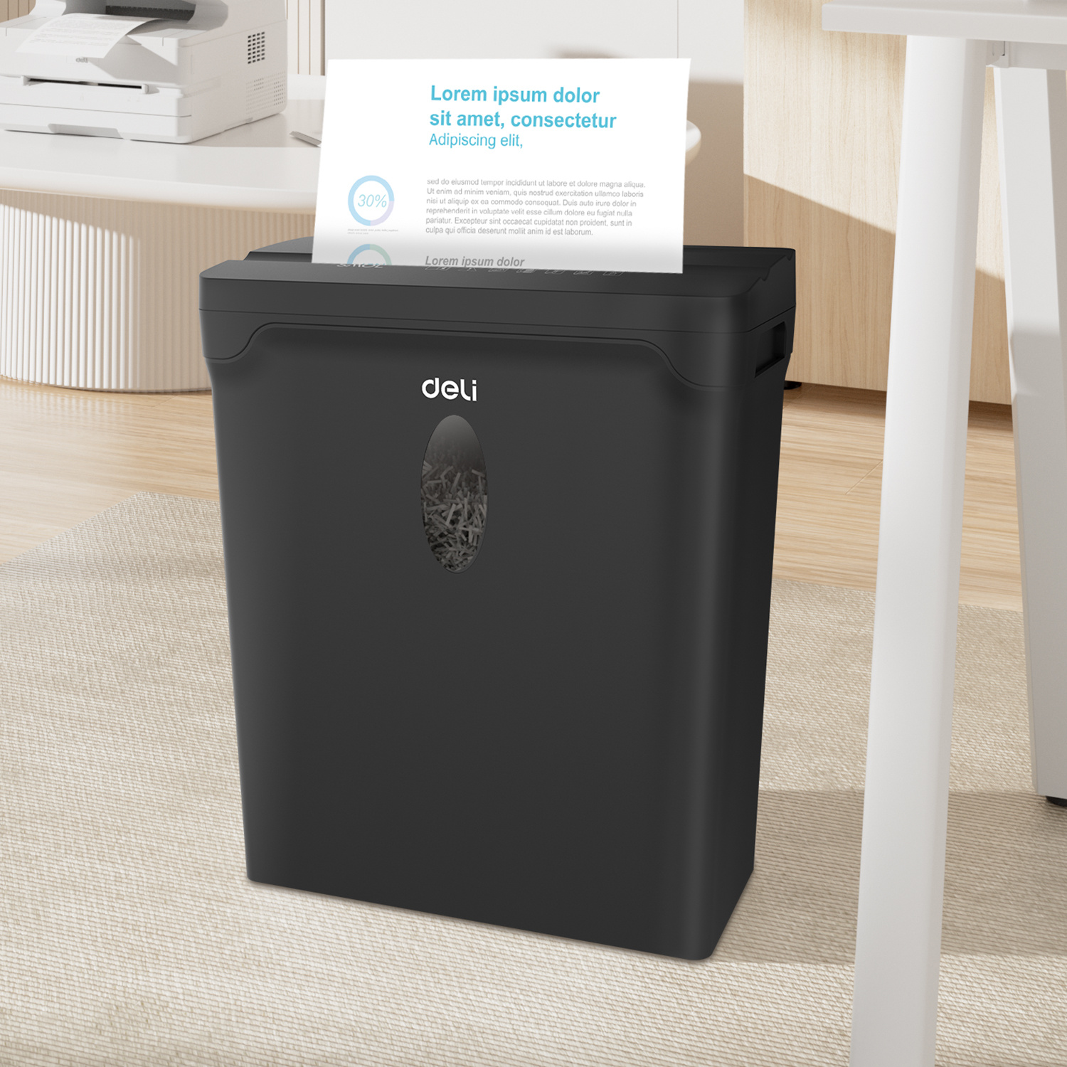 Шредер Deli ET015 черный с автоподачей (секр.P-4) фрагменты 5лист. 10лтр. пл.карты
