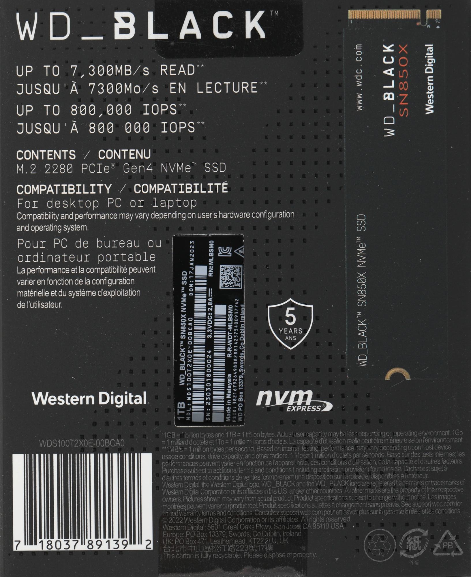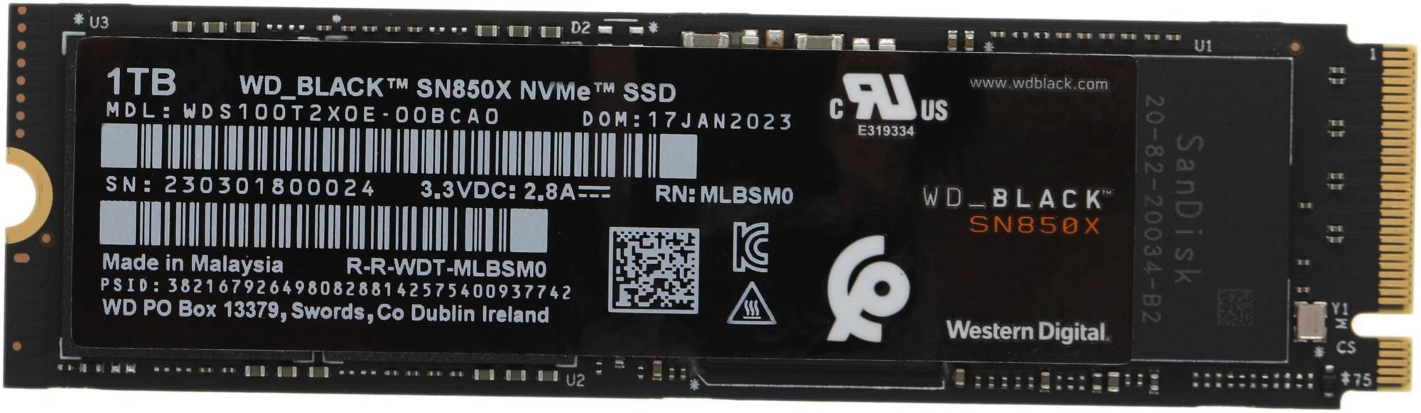 Накопитель SSD WD PCIe 4.0 x4 1TB WDS100T2X0E Black SN850X M.2 2280