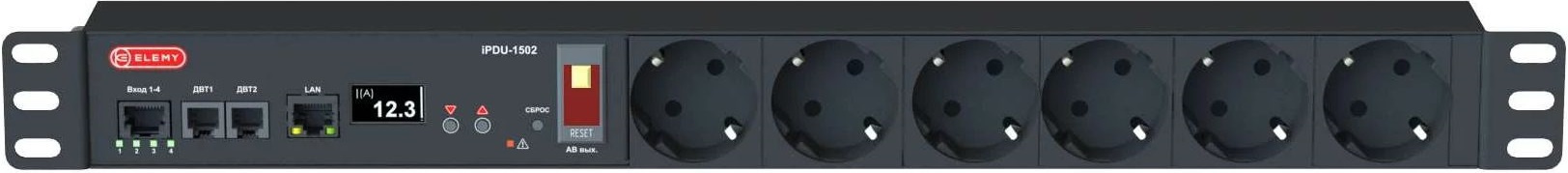 Блок распределения питания Elemy IPDU-1502 гор.размещ. 6xSchuko с мониторингом 15A Schuko 2.4м