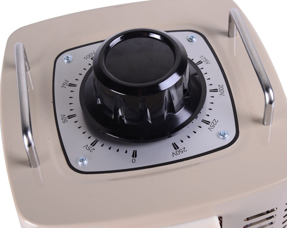 Диапазон регулировки напряжения от 0 до 250 В; Мощность 2 кВА; Максимальный ток 8 А; Небольшие размеры; Данный автотрансформатор должен быть заземлён. Минимальное расстояние от корпуса прибора до стен 50 мм.
