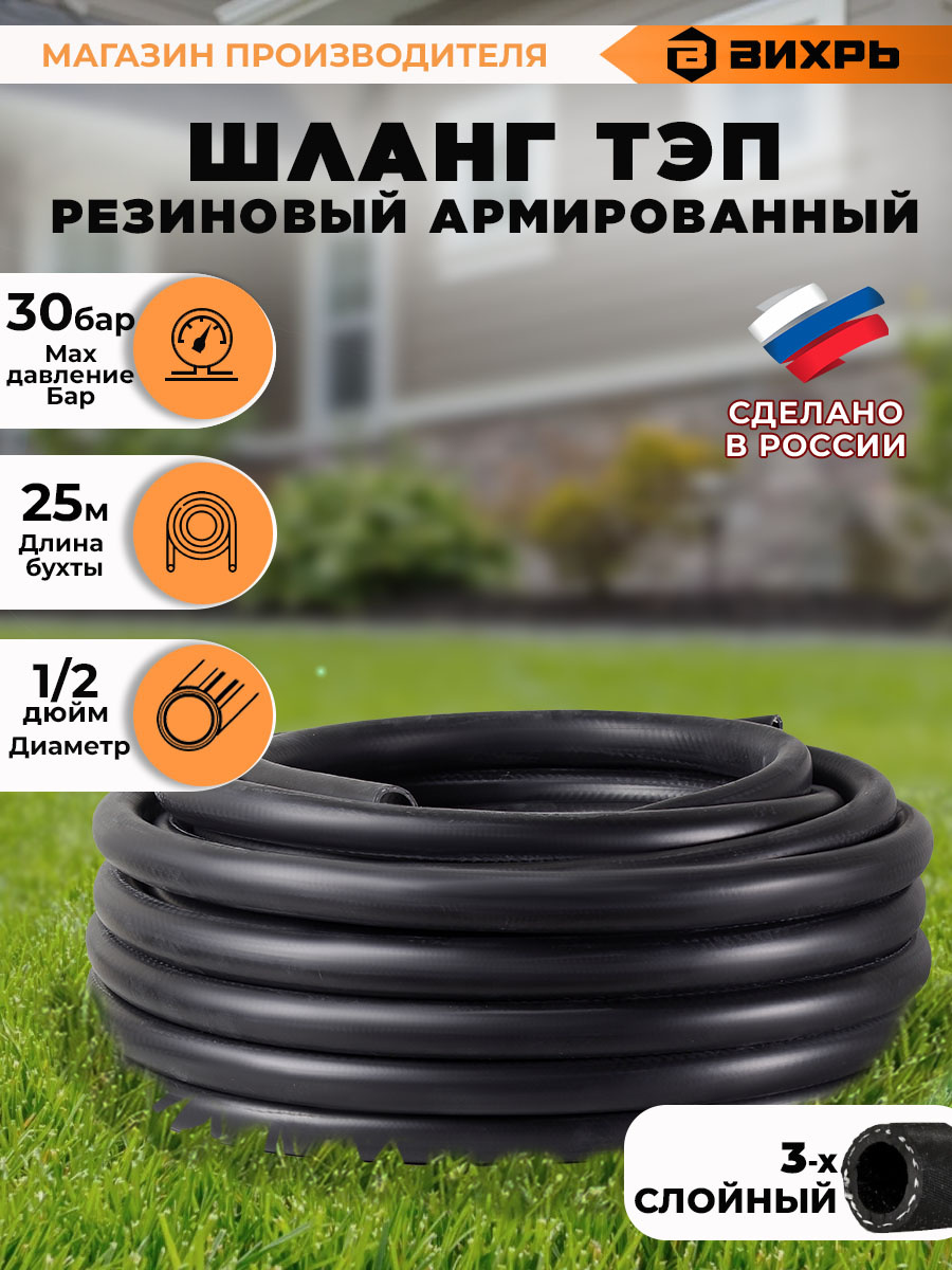 Морозостойкий, допустимый перепад рабочих температур от -50°C до +90°C; Армирован синтетической нитью. Благодаря армированию шланг не перекручивается и не перегибается; Экологически чистый, не содержит в составе кадмия, бария и свинца; Устойчив к воздействию УФ излучения. Не подвержен гниению.