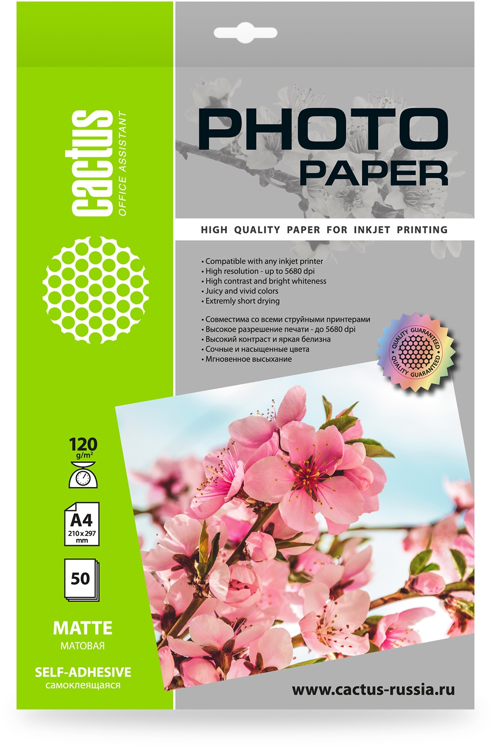Фотобумага Cactus CS-MSA412050 A4/120г/м2/50л./белый матовое самоклей. для струйной печати