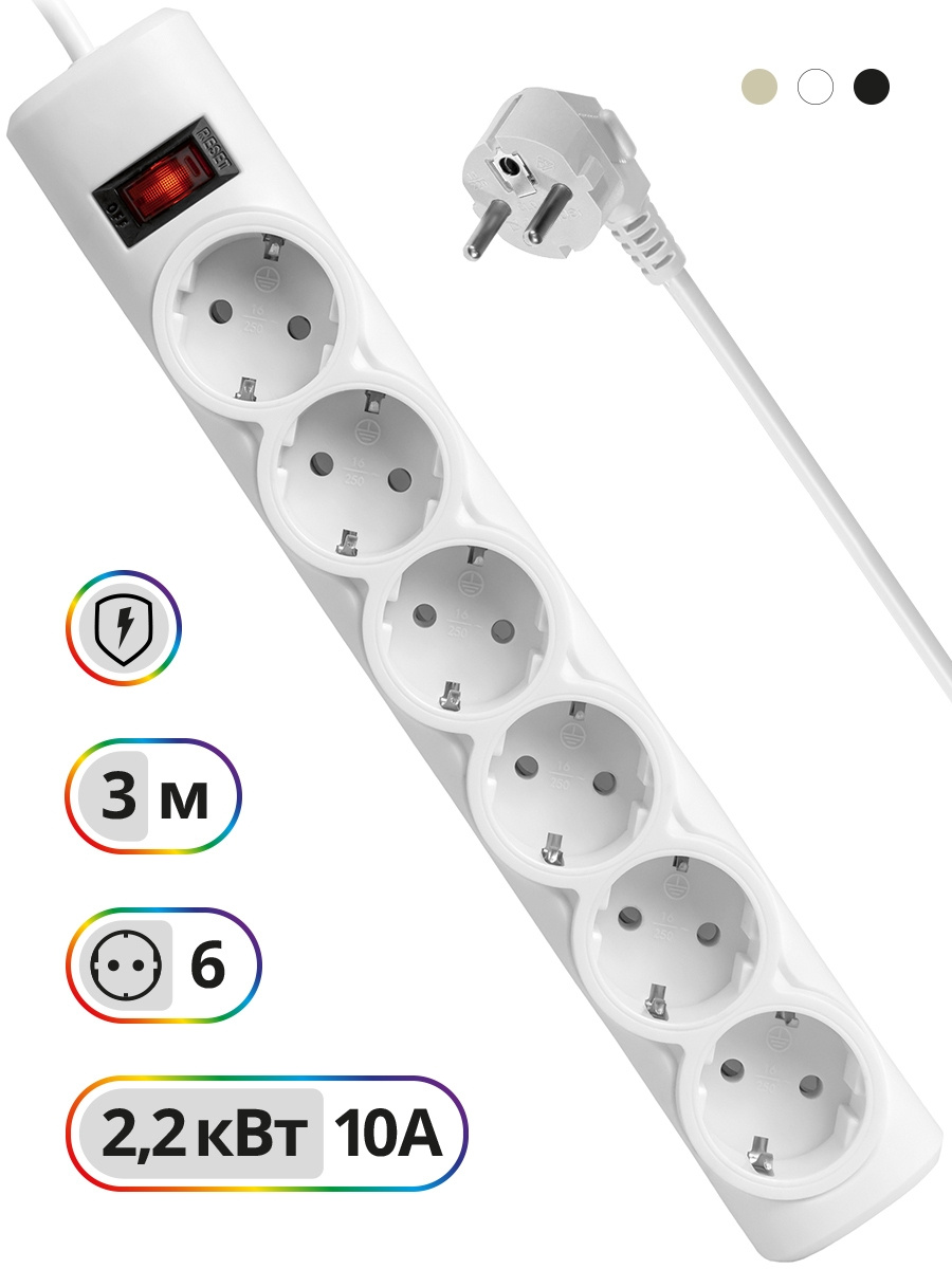 Автоматический предохранитель, встроенный в выключатель. Защита от перегрузки и короткого замыкания. Корпус из негорючего пластика.