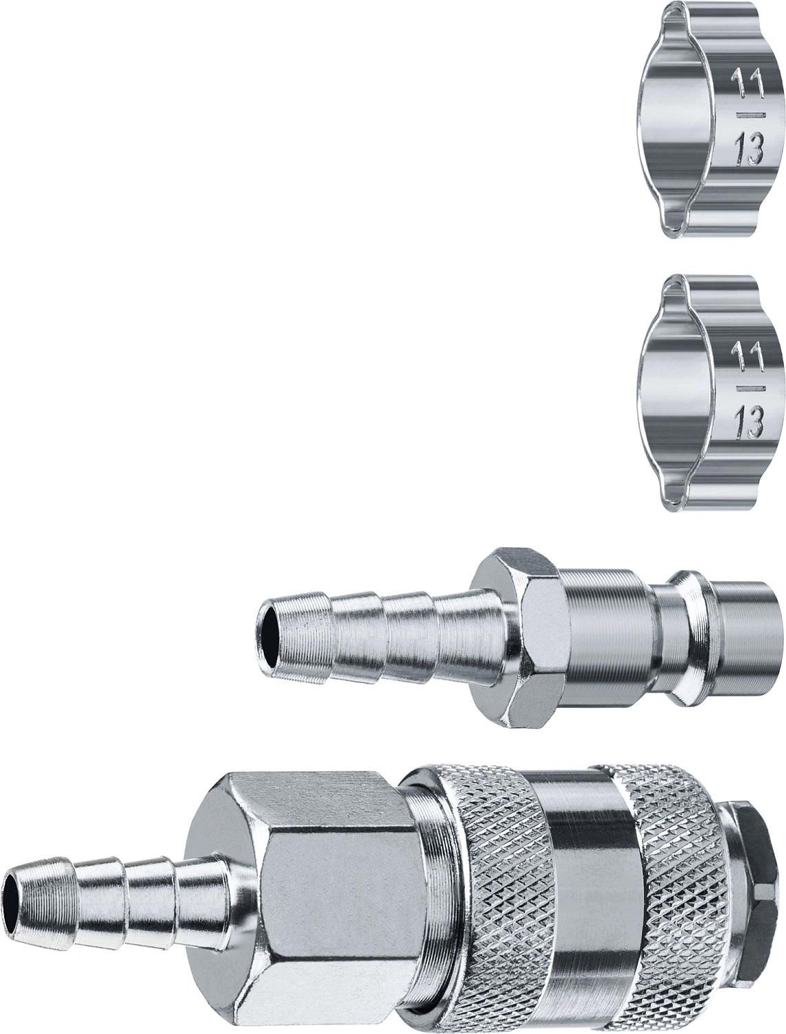 Набор (штуцер"елочка" 8 мм - рапид муфта) + (рапид штуцер-штуцер"елочка" 8 мм) + (обжимные хомуты 2 шт.)