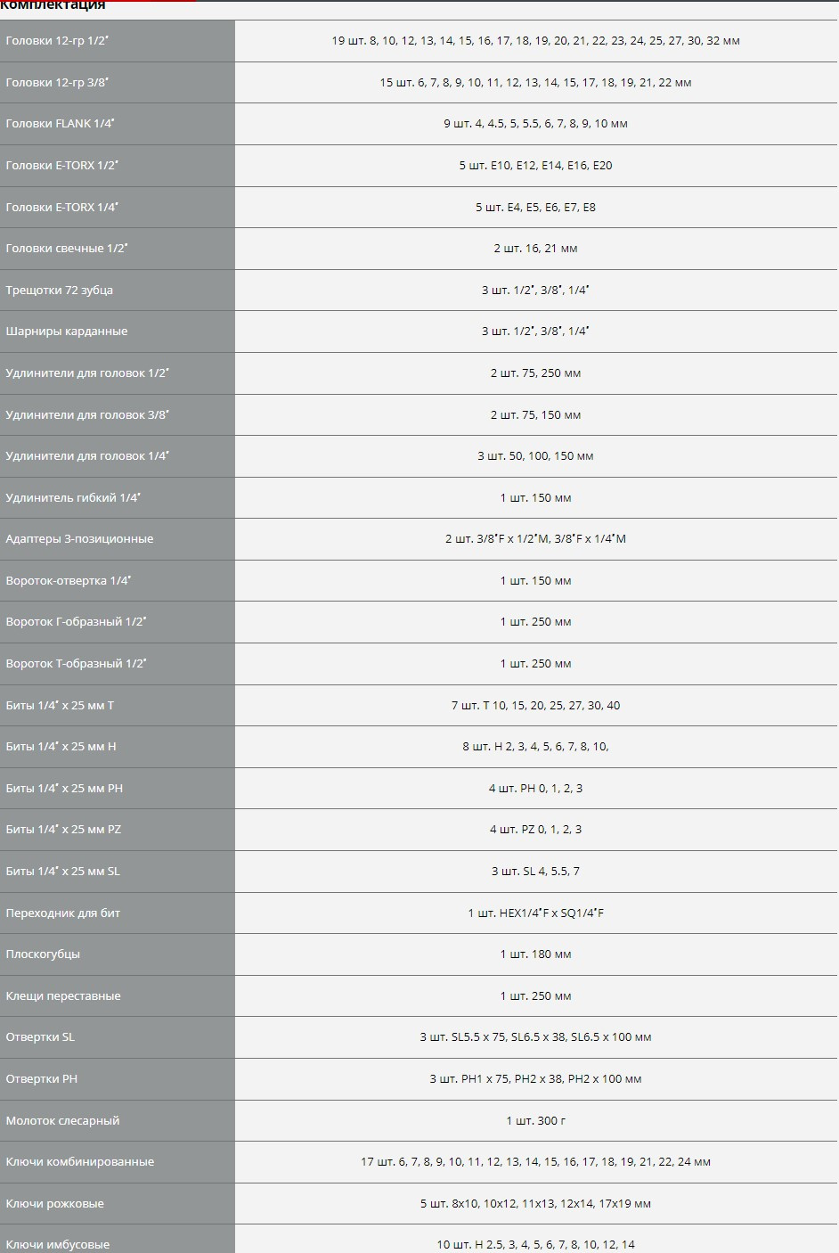 Комплектация бит