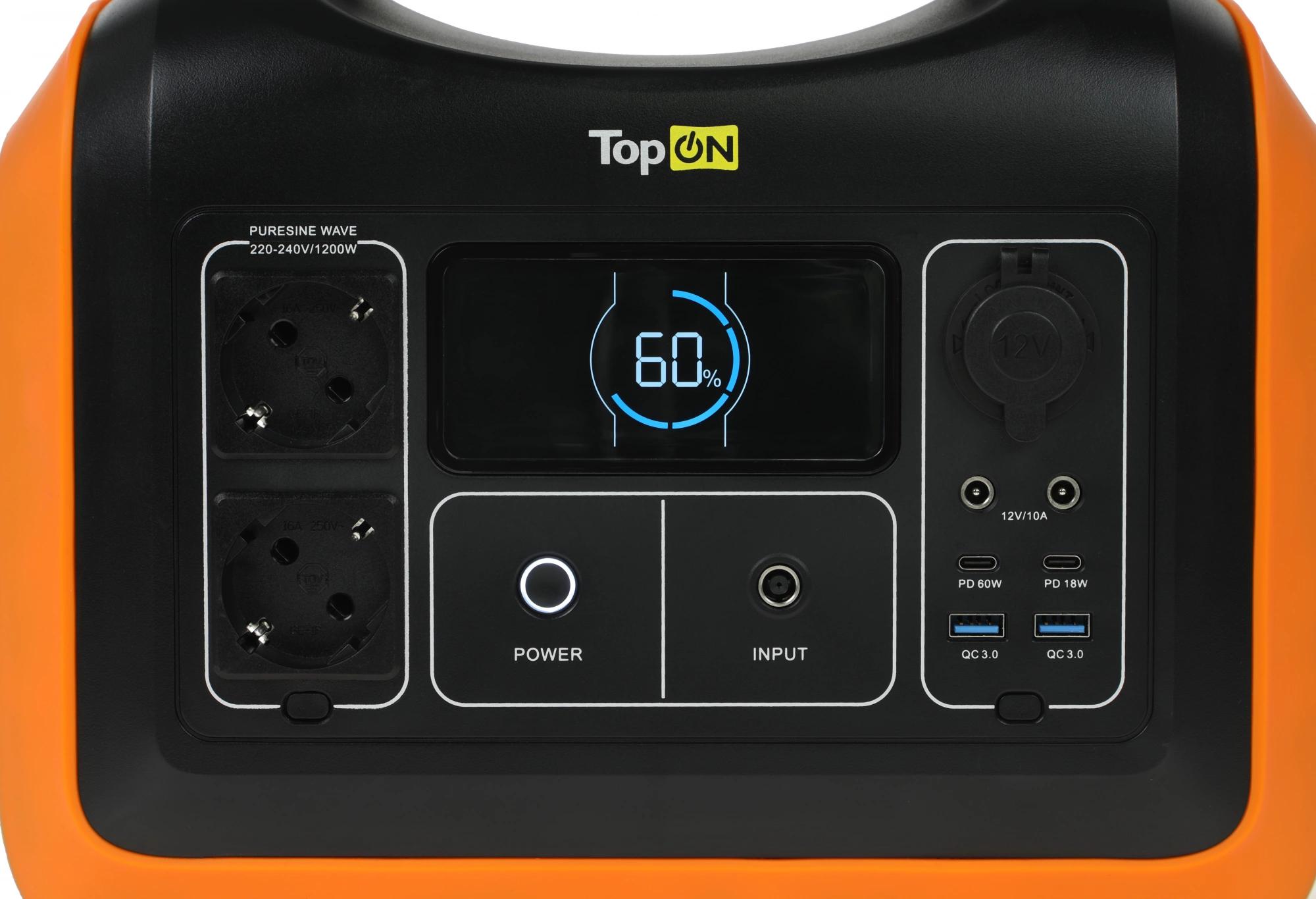 Электростанция портативная TopON TOP-X1200 310000mAh 10A QC3.0/PD3.0 4xUSB черный/оранжевый (103258)