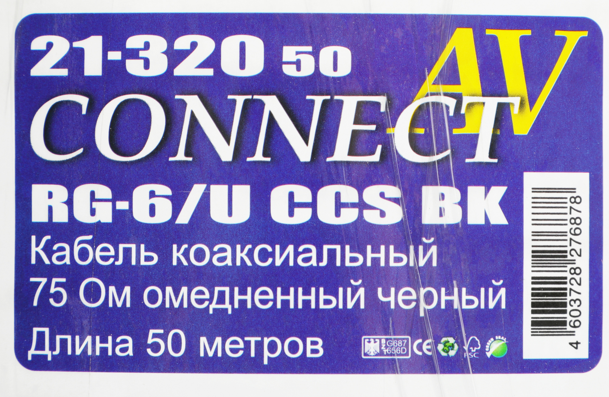Кабель CONNECT-AV RG-6/U CCS BK коаксиальный 75 Ом омедненный черный 50 м, бухта