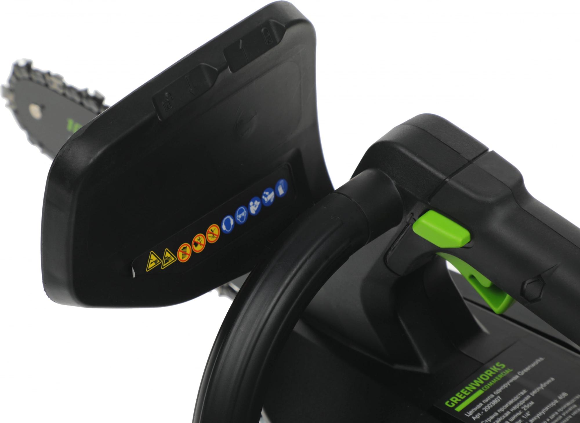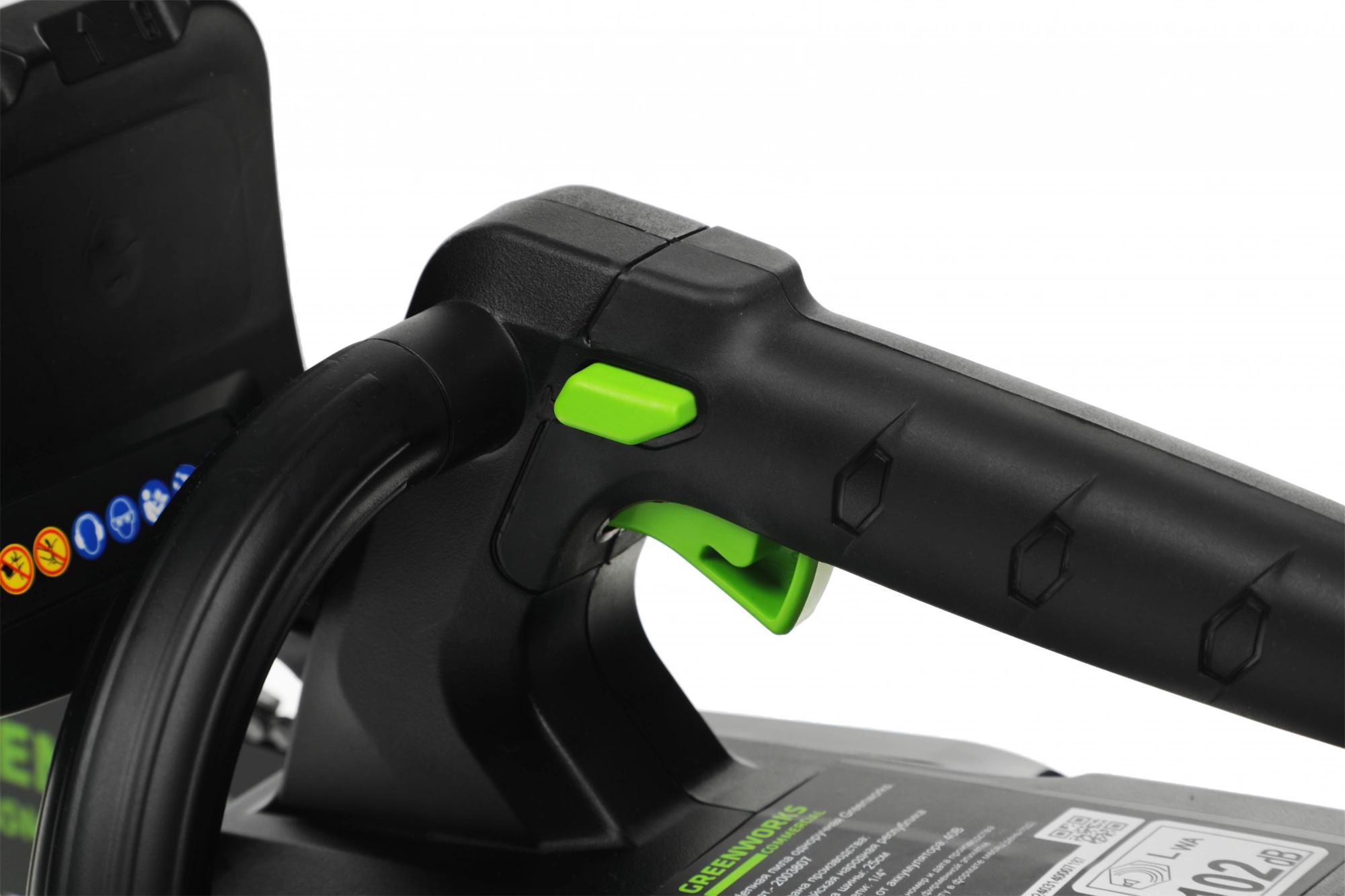 Цепная аккумуляторная пила Greenworks GD40TCS 40V - одноручная цепная пила, которая отлично подойдет для арбористов. Компактная, с высокой скоростью цепи - 12 м/с. Ее надежный бесщеточный двигатель сопоставим по мощности с бензиновыми аналогами на 0, 7 л/сил.