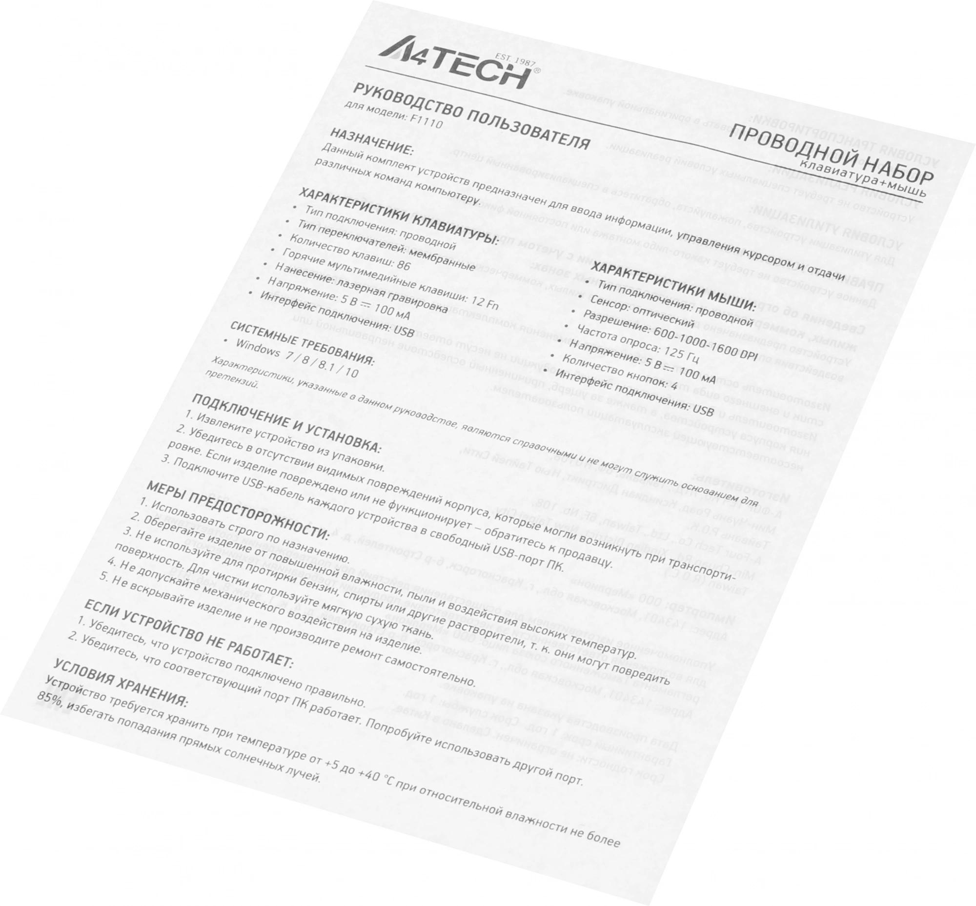 Длина провода клавиатуры