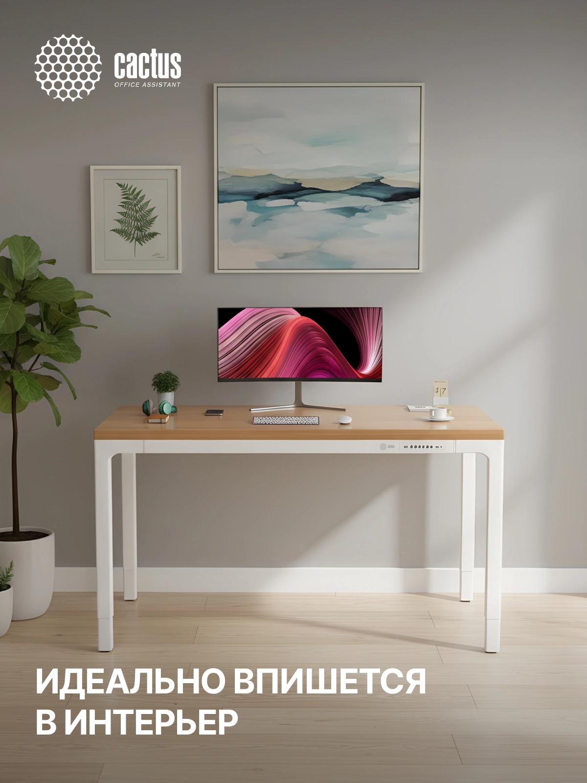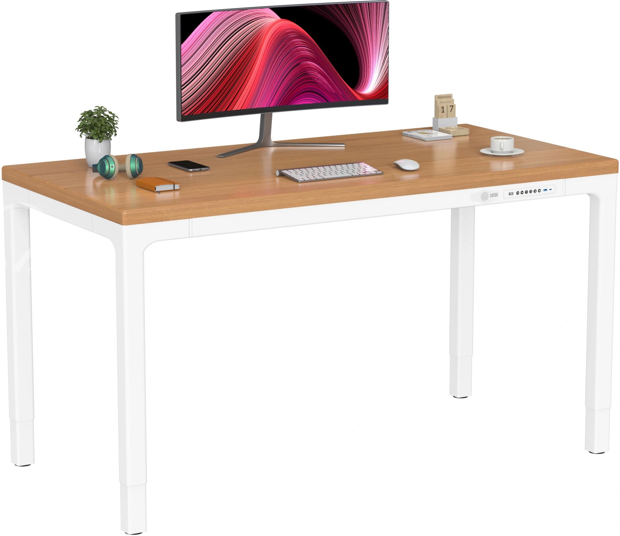 Стол для компьютера Cactus CS-ET-WWD электропривод столешница массив тропического дерева Сипо Махагони белый красное дерево каркас белый 160x75x80см