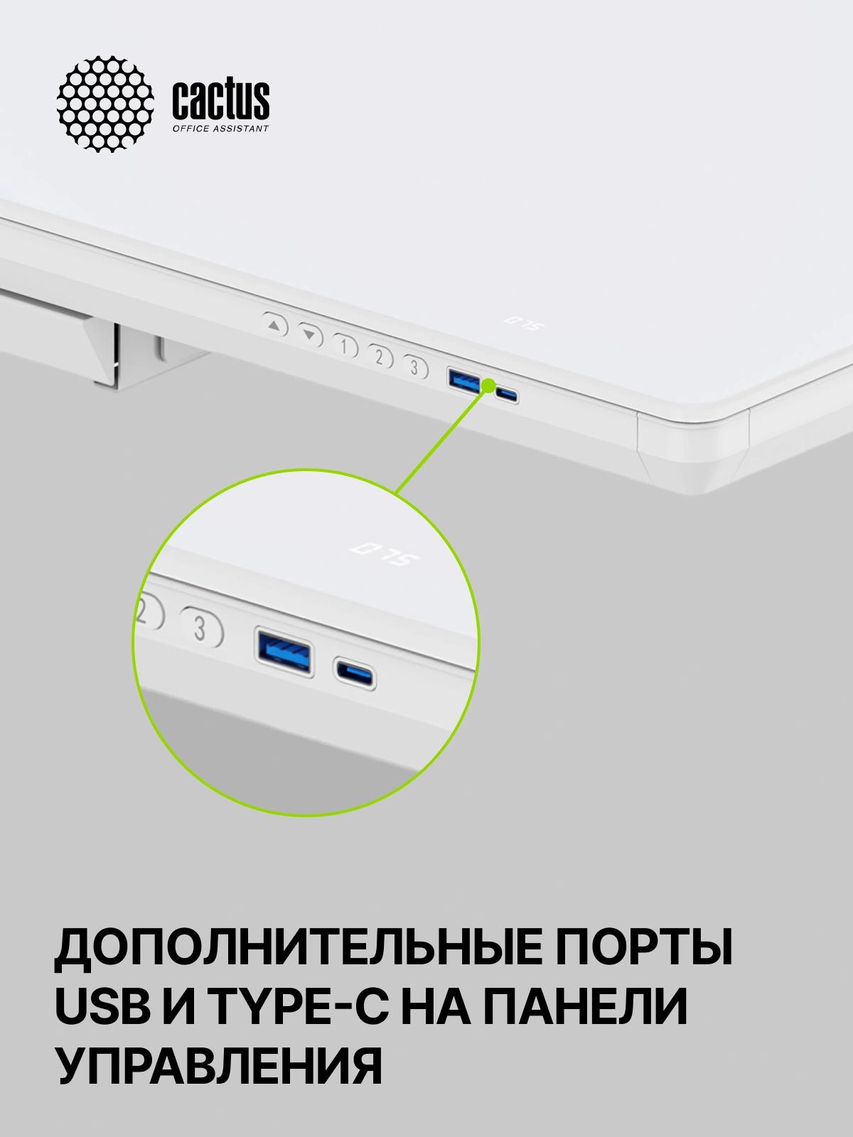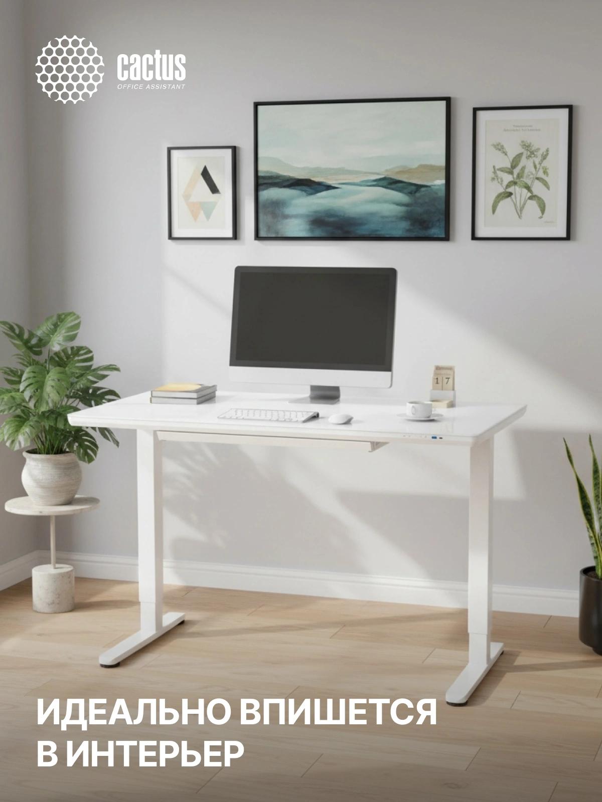 Стол для компьютера Cactus CS-EGD-WWT электропривод столешница стекло белый каркас белый