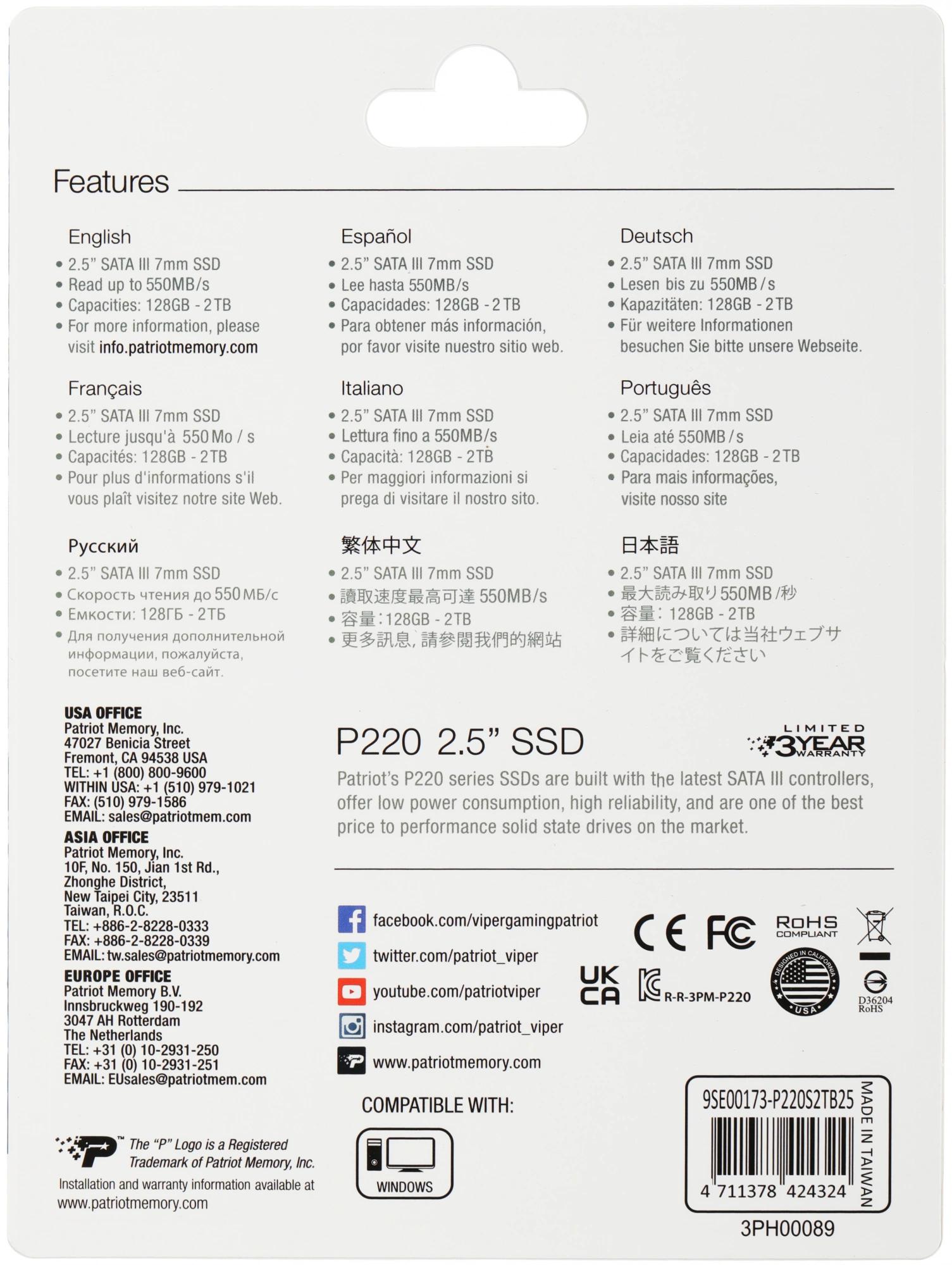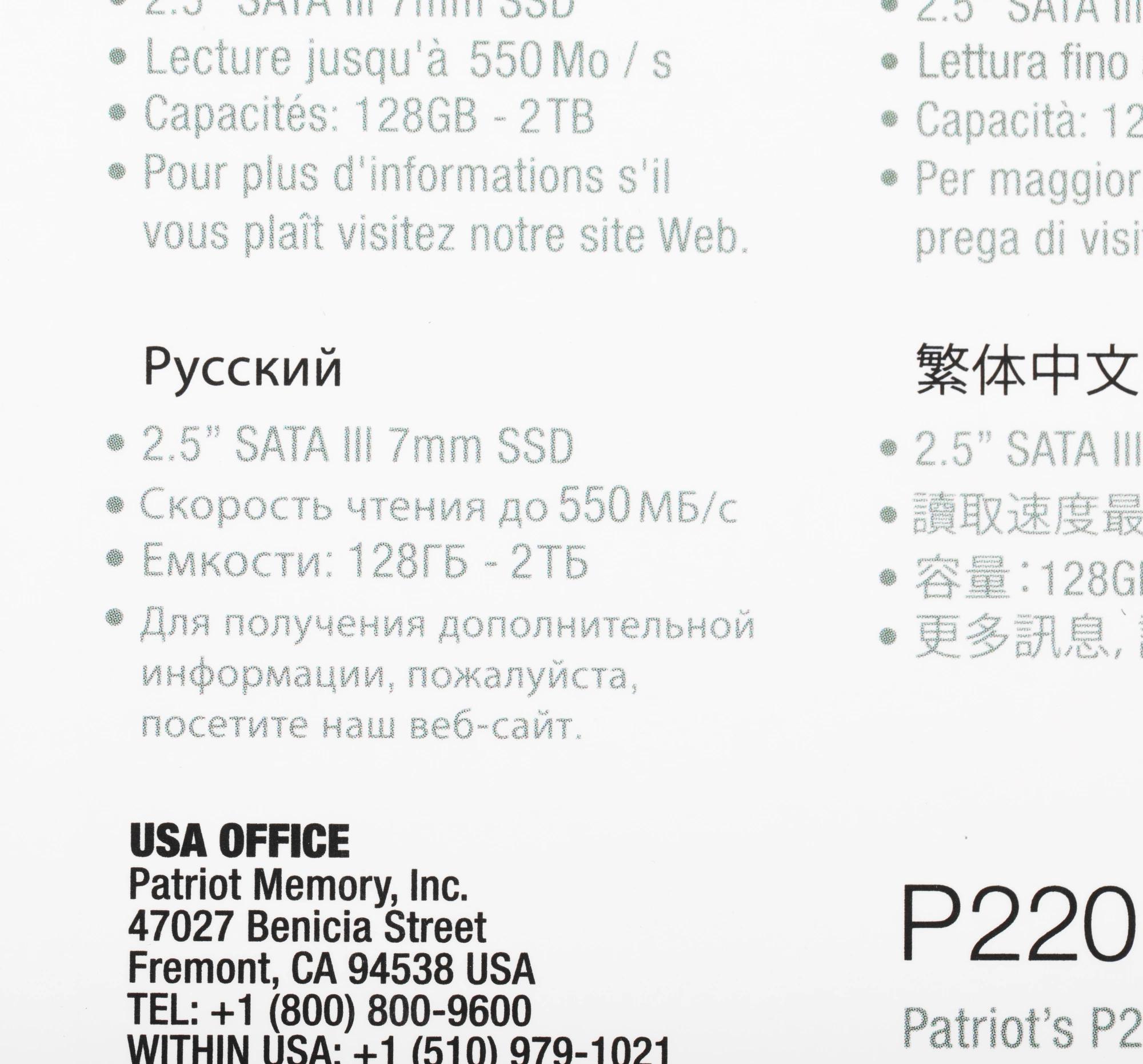 Накопитель SSD Patriot SATA-III 2TB P220S2TB25 P220 2.5"