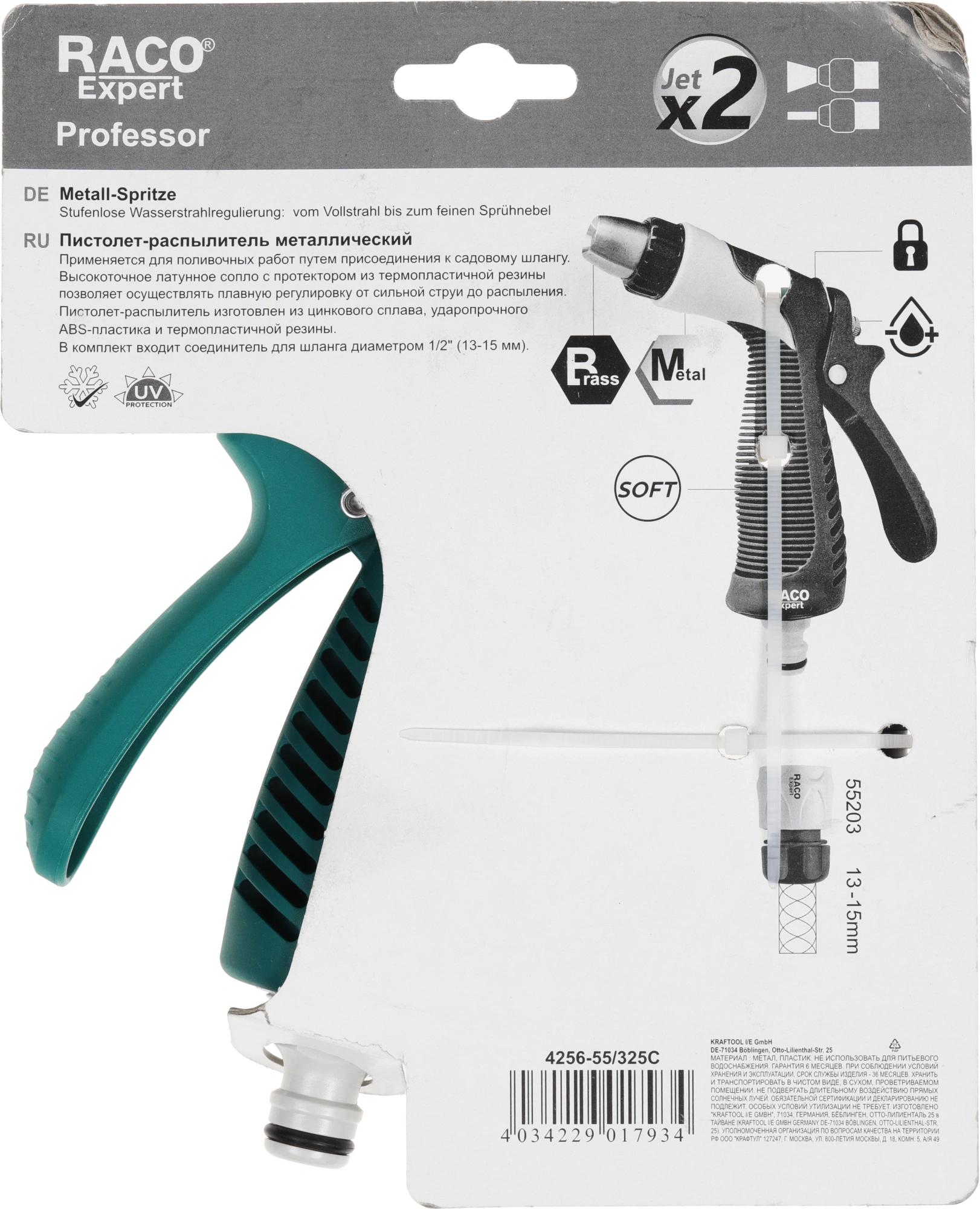 Пистолет-распылитель RACO Profi-Plus 4256-55/325C предназначен для полива садовых участков. Латунное сопло предотвращает процесс коррозии и увеличивает срок службы инструмента. Курок-фиксатор упрощает продолжительную работу.