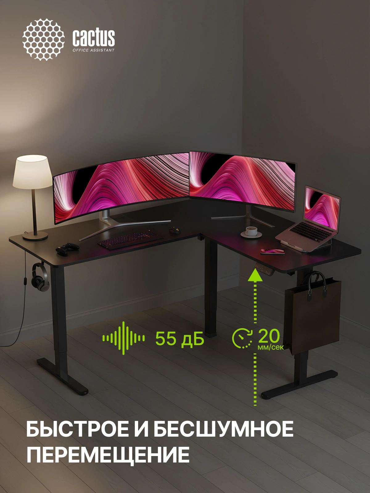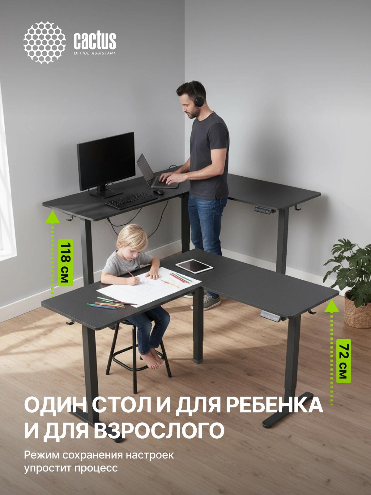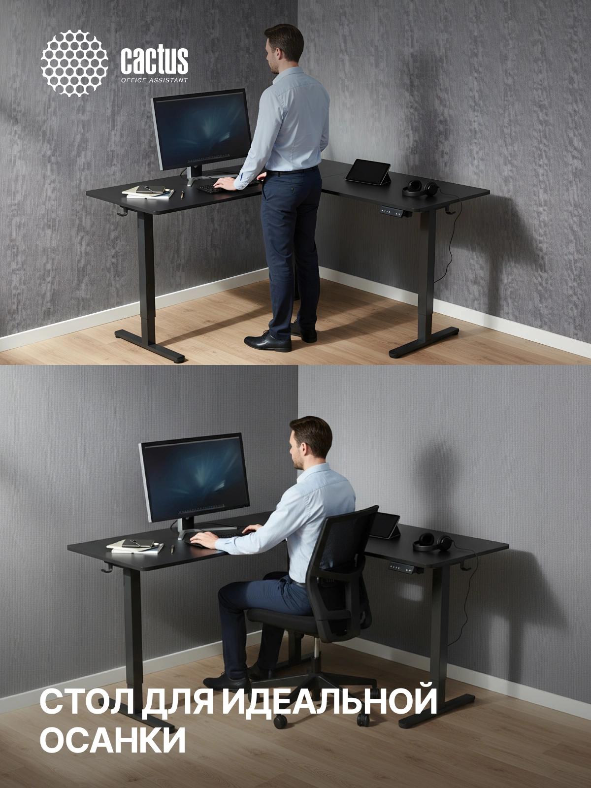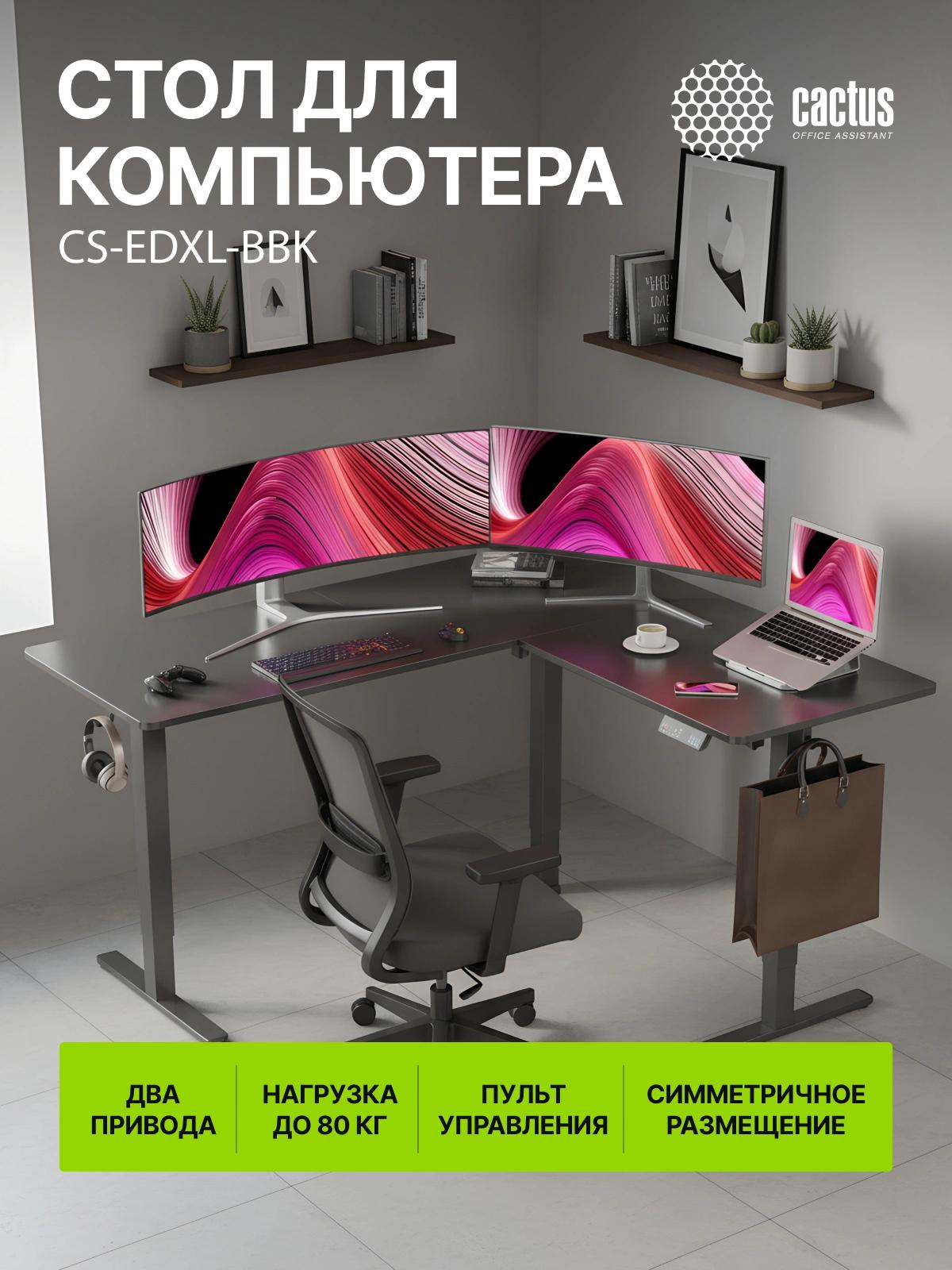 Стол для компьютера Cactus CS-EDXL-BBK электропривод столешница МДФ черный каркас черный 160x140x72см