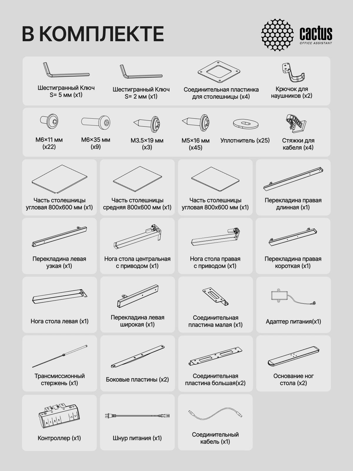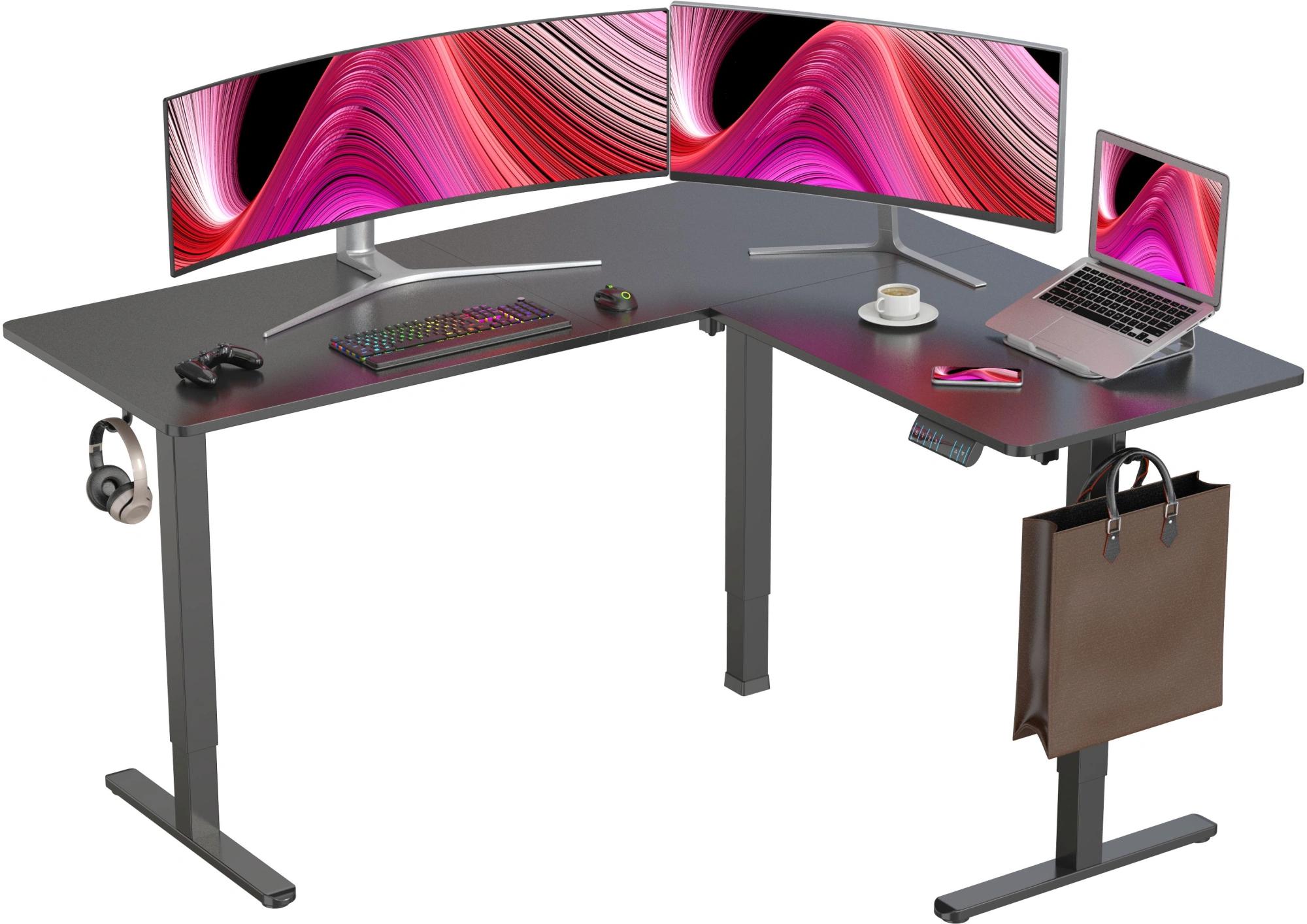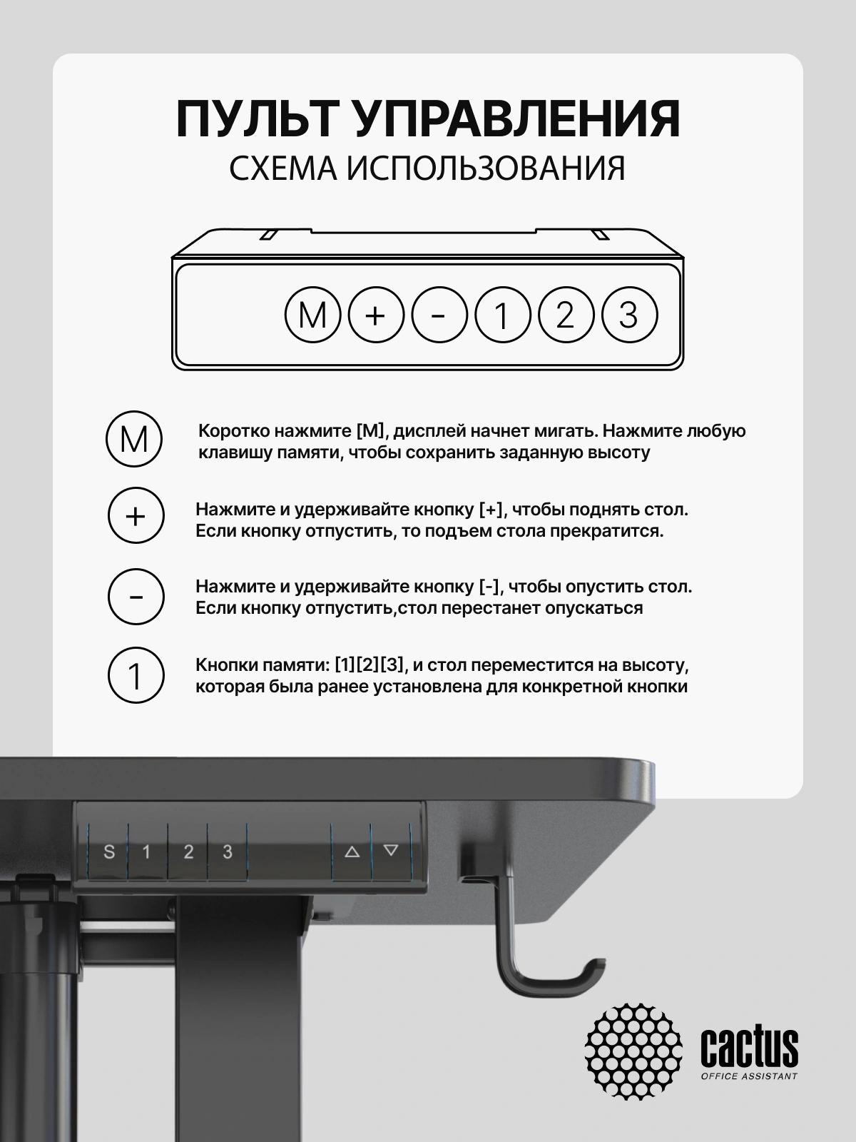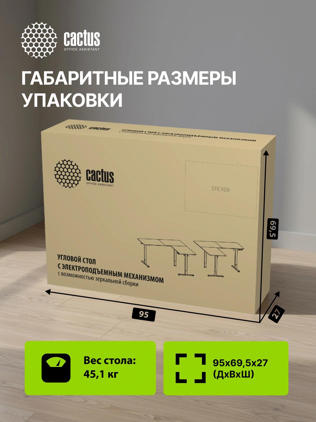 Стол для компьютера Cactus CS-EDXL-BBK электропривод столешница МДФ черный каркас черный 160x140x72см